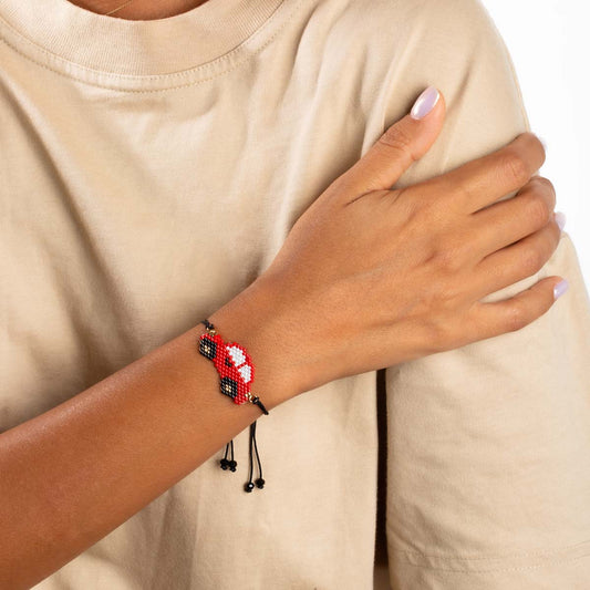 سوار على شكل قلب مطلي بالمينا الحمراء
