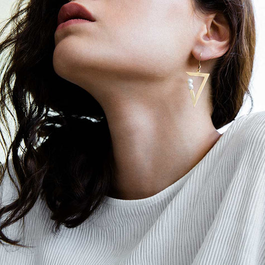 أقراط متدلية من اللؤلؤ على شكل مثلث