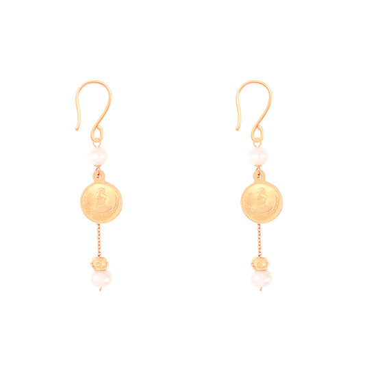 أقراط متدلية على شكل عملة ذهبية من اللؤلؤ