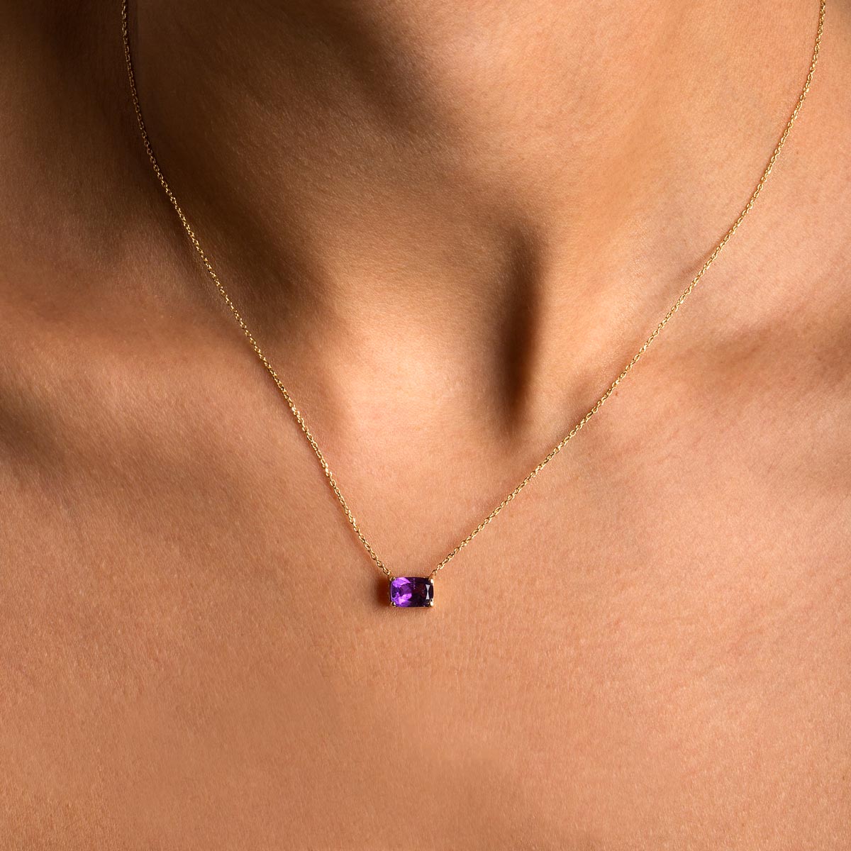 استمتعي بالأناقة الفاخرة التي توفرها لك قلادة الجمشت. صُنعت هذه القلادة يدويًا من الذهب الصلب عيار 18 قيراطًا، وتتميز بحجر جمشت أرجواني مذهل يضفي على مظهرك لمسة من الرقي والفخامة. عززي من أناقة أي زي بهذه القطعة الحصرية التي تشع بالجمال والأناقة.