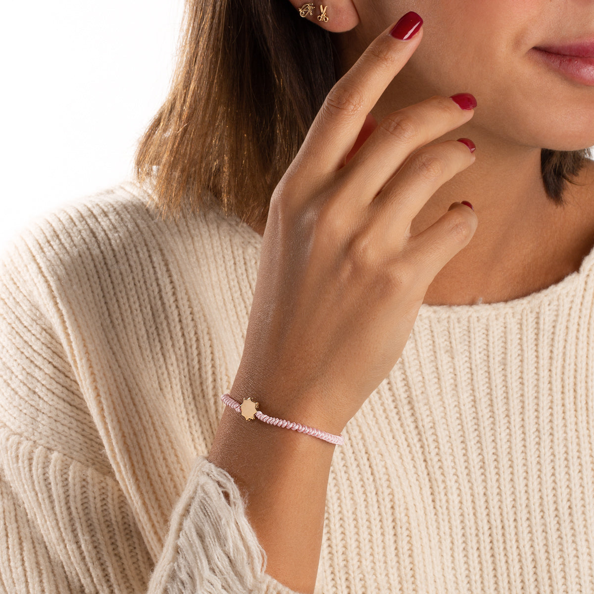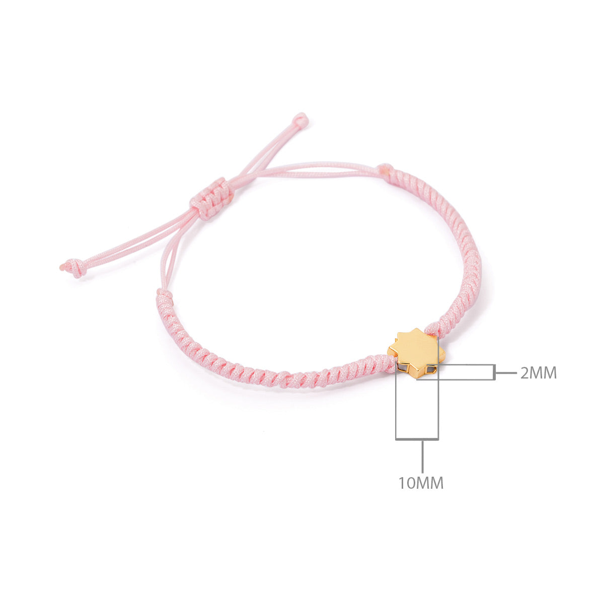 استمتعي بالأناقة الفاخرة التي يوفرها سوار أنتاريس ستار كورد. مصنوع يدويًا من ذهب عيار 18 قيراطًا وحبل وردي مضفر رقيق، هذا السوار ينضح بالرقي والحصرية. زيّني معصمك بنجمة أنتاريس المتلألئة، رمز القوة والجمال. ارتقي بأي زي مع هذه القطعة الرائعة.