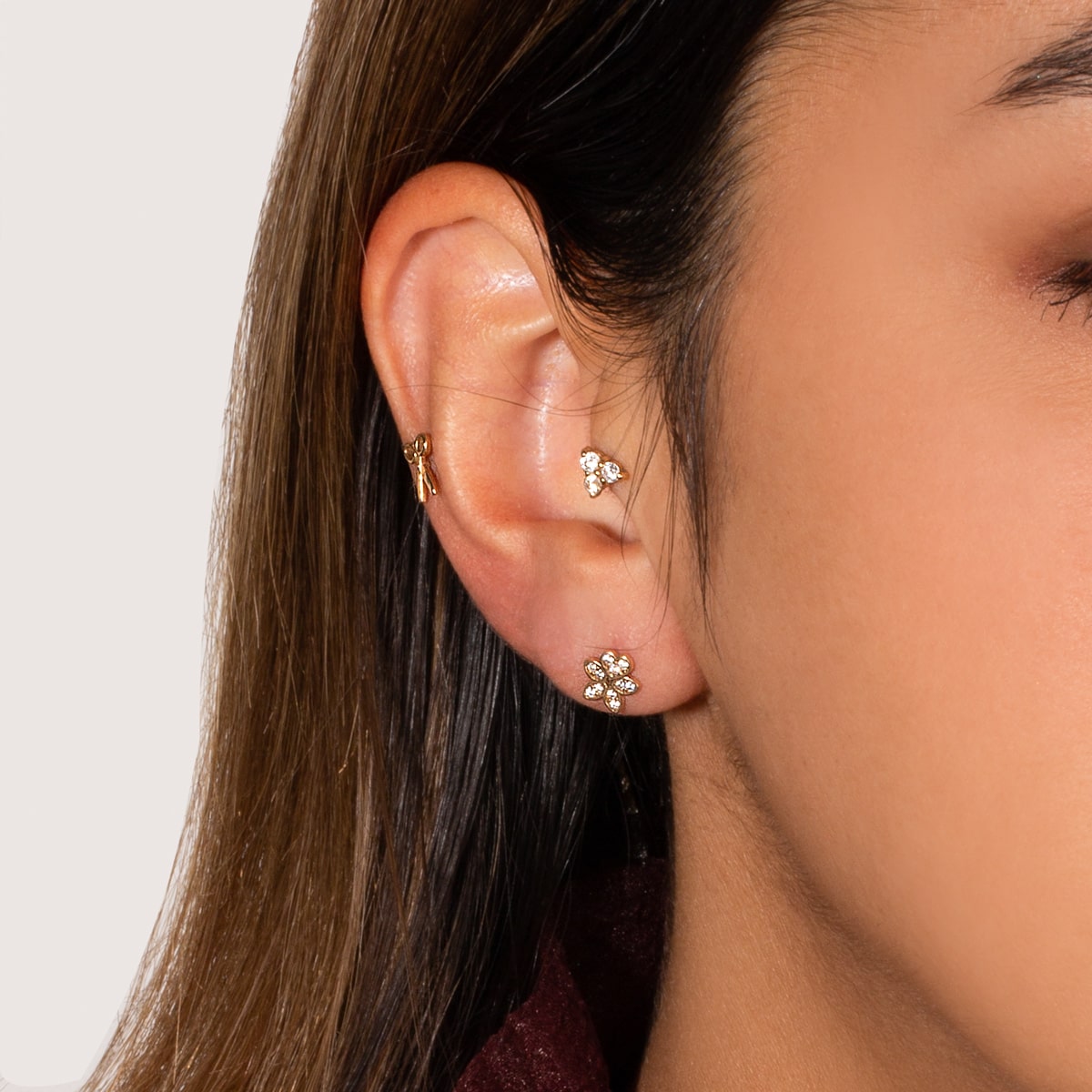 استمتعي بفخامة أقراط أنثوريوم المصنوعة من الذهب الصلب عيار 18 قيراطًا والمرصعة بالألماس المستدير، مستوحاة من الجمال الخالد لزهرة أنثوريوم البيضاء. ارتقِ بأي مظهر بأناقة ورقي هذه الأقراط المصنوعة يدويًا.