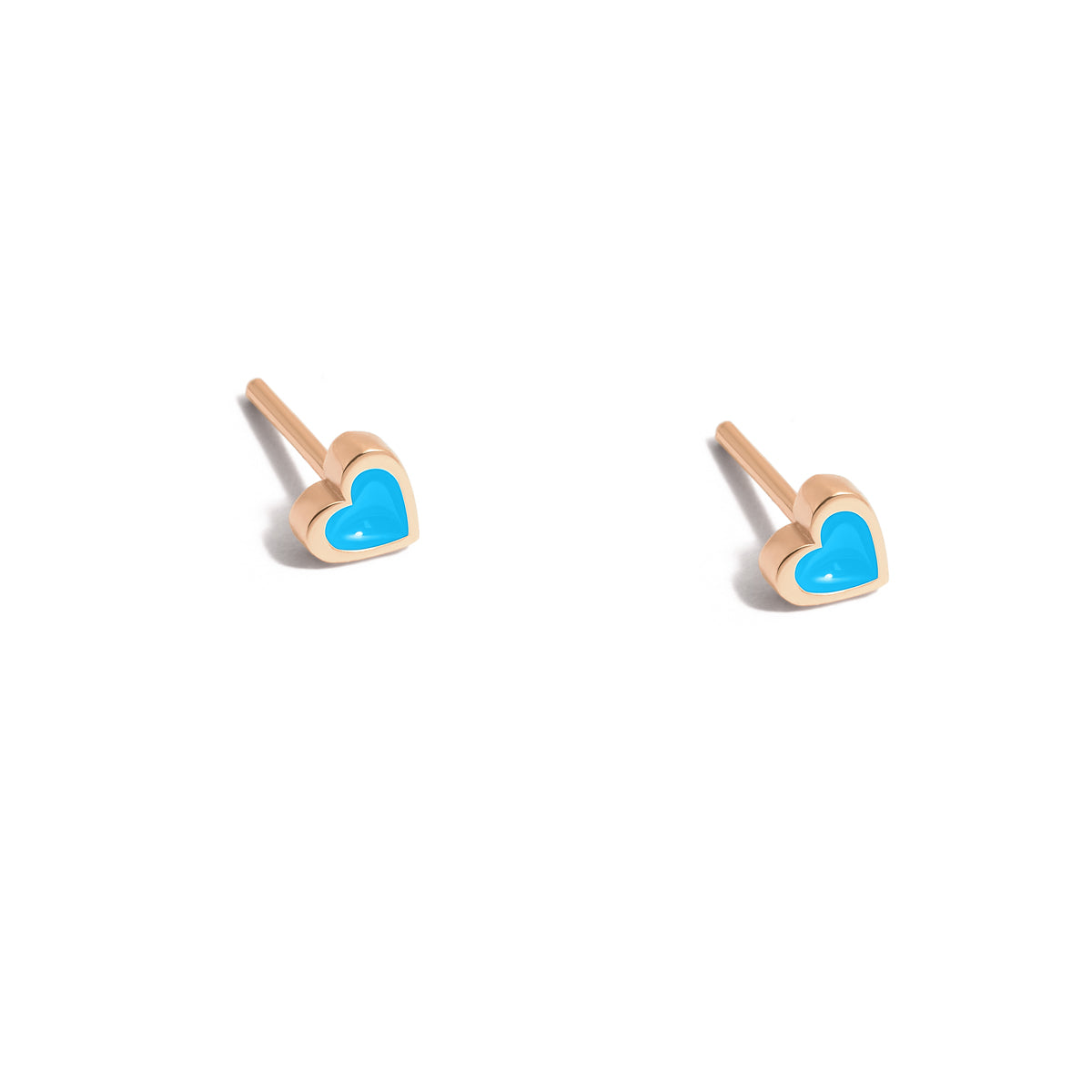 أضف لمسة من الصيف إلى ملابسك مع أزرار القلب الصغيرة الزرقاء. هذه الأزرار مصنوعة يدويًا من الذهب الصلب عيار 18 قيراط وعلى شكل قلب رقيق، وتتميز بسطح من المينا باللون الأزرق الفاتح للحصول على مظهر ممتع ومرح. مثالية لأي مناسبة، هذه الأزرار يجب اقتناؤها لأي محب للمجوهرات.