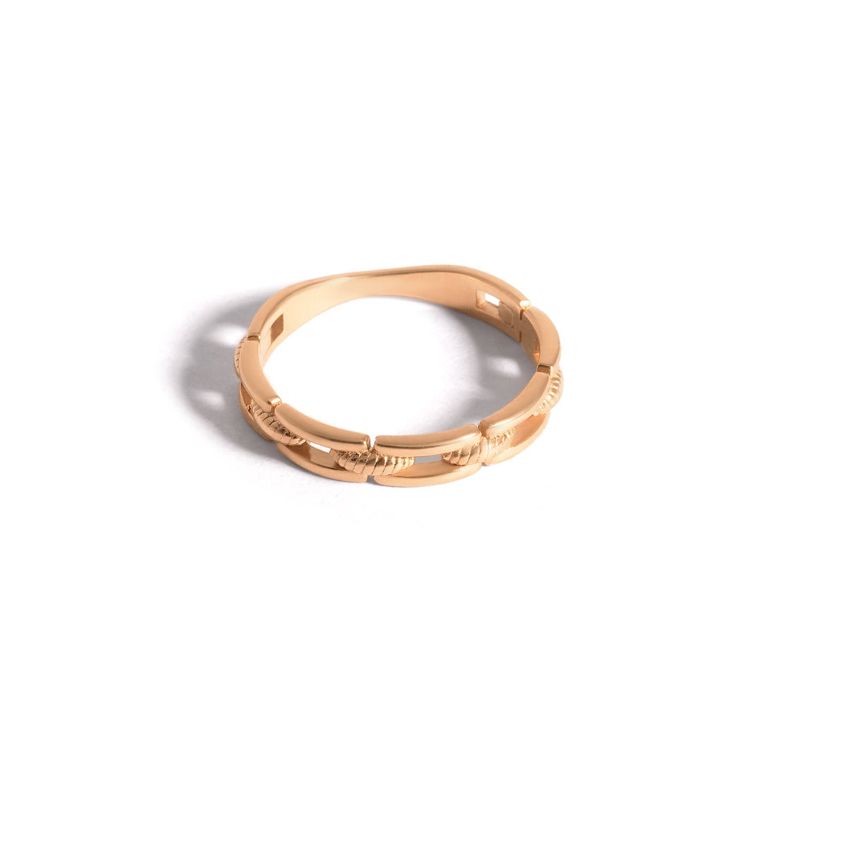 نقدم لك خاتم السلسلة المصنوع من الذهب الصلب عيار 18 قيراطًا. ارتقِ بمجموعة مجوهراتك بهذه القطعة الفاخرة التي تمزج بسلاسة بين الموضة والوظيفة. يعد هذا الخاتم رمزًا للأناقة والرقي الخالدين، ومن المؤكد أنه سيترك انطباعًا رائعًا.