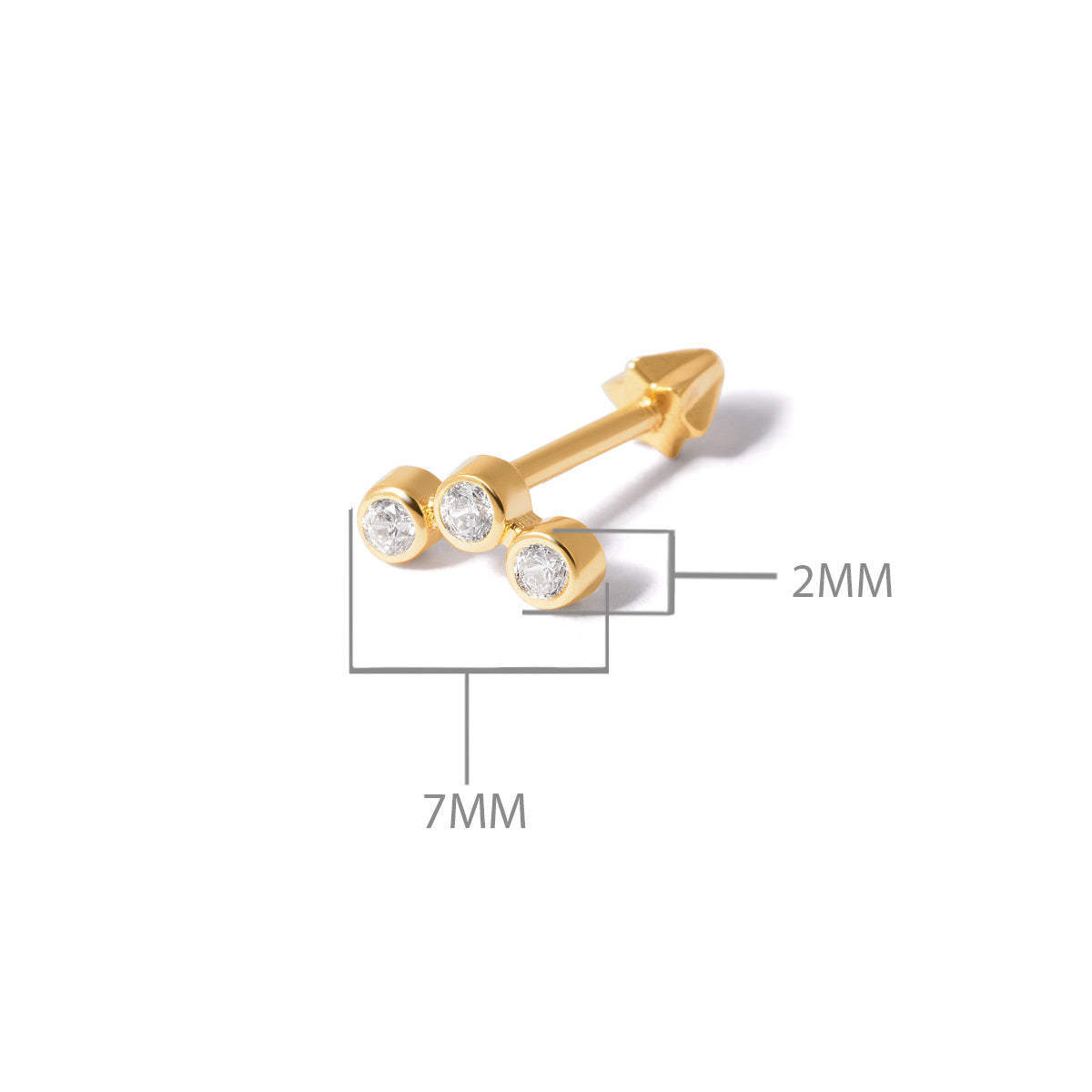 يتسم ثقب القوس الماسي هذا بالأناقة والحصرية. فهو مصنوع من الذهب الصلب عيار 18 قيراطًا، ويتميز بشريط منحني من الماس مزين بثلاثة ماسات دائرية مبهرة. مثالي لأي ثقب، ويضيف لمسة من الفخامة إلى أي مظهر. امتلكي أفضل ثقب فاخر مع هذه القطعة الجميلة.