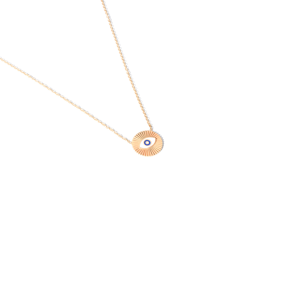 This sophisticated Enamel Eye Necklace is crafted from 18k gold, exuding luxury and exclusivity. Adorned with an intricately designed enamel eye, it's a true work of art. Elevate your style with this tasteful and elegant piece, perfect for those who appreciate the finer things in life.