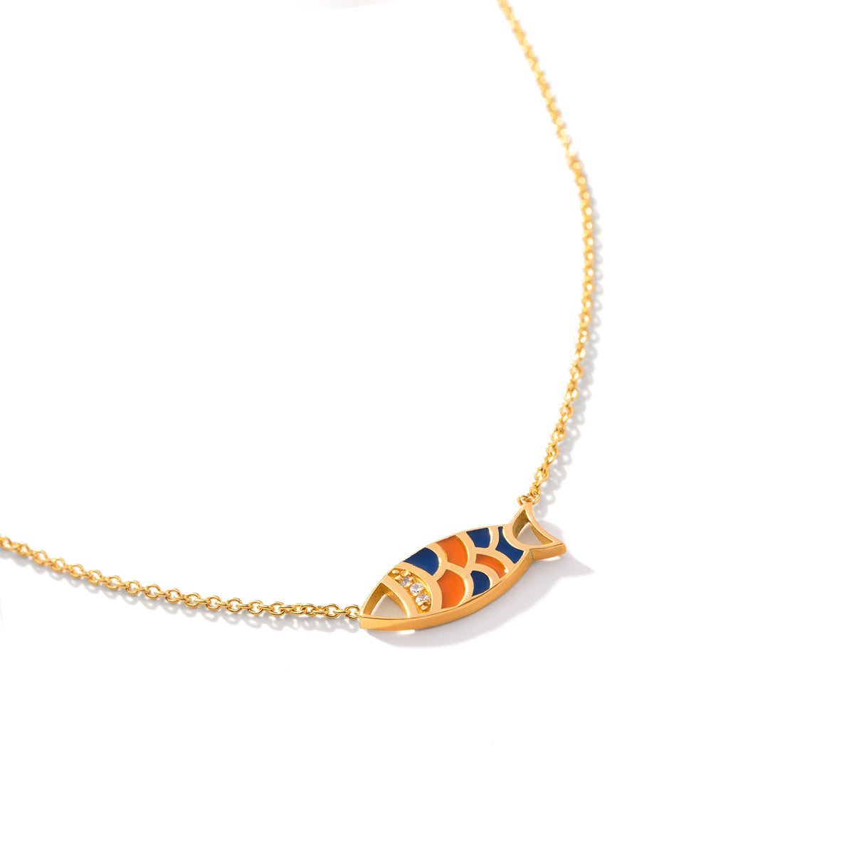 استمتعي بالفخامة مع قلادة مينا السمكة. صُنعت هذه القطعة الرائعة من الذهب الصلب عيار 18 قيراطًا ومزينة بألماس مقطوع بشكل دائري، وهي مستوحاة من الشكل الجميل للسمكة. يضفي المينا الملون لمسة من الخيال على هذا الإكسسوار المتطور. ارتقي بأي مجموعة مع هذه القلادة الحصرية.