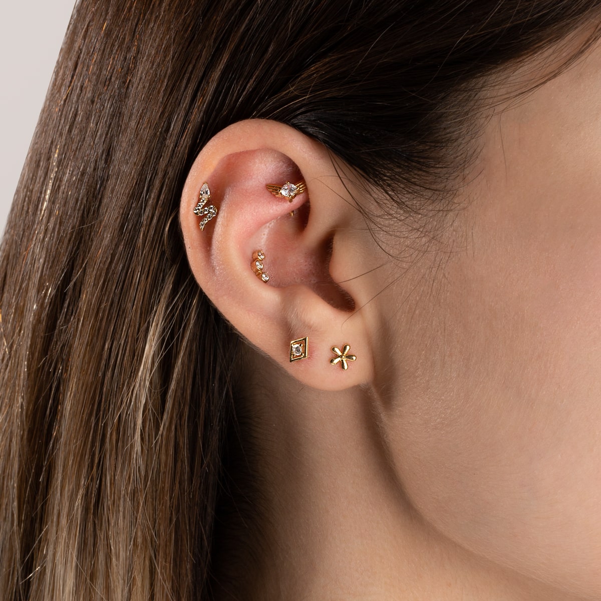 تم تصميم ثقب الزهرة الرائع هذا من الذهب الصلب عيار 18 قيراطًا، مما يضفي لمسة من الفخامة والرقي على أي إطلالة. تصميم الزهرة الرقيق فريد من نوعه حقًا، مما يجعله ضروريًا لأولئك الذين يبحثون عن إكسسوارات حصرية وأنيقة. ارتقِ بأسلوبك بهذه القطعة المذهلة.