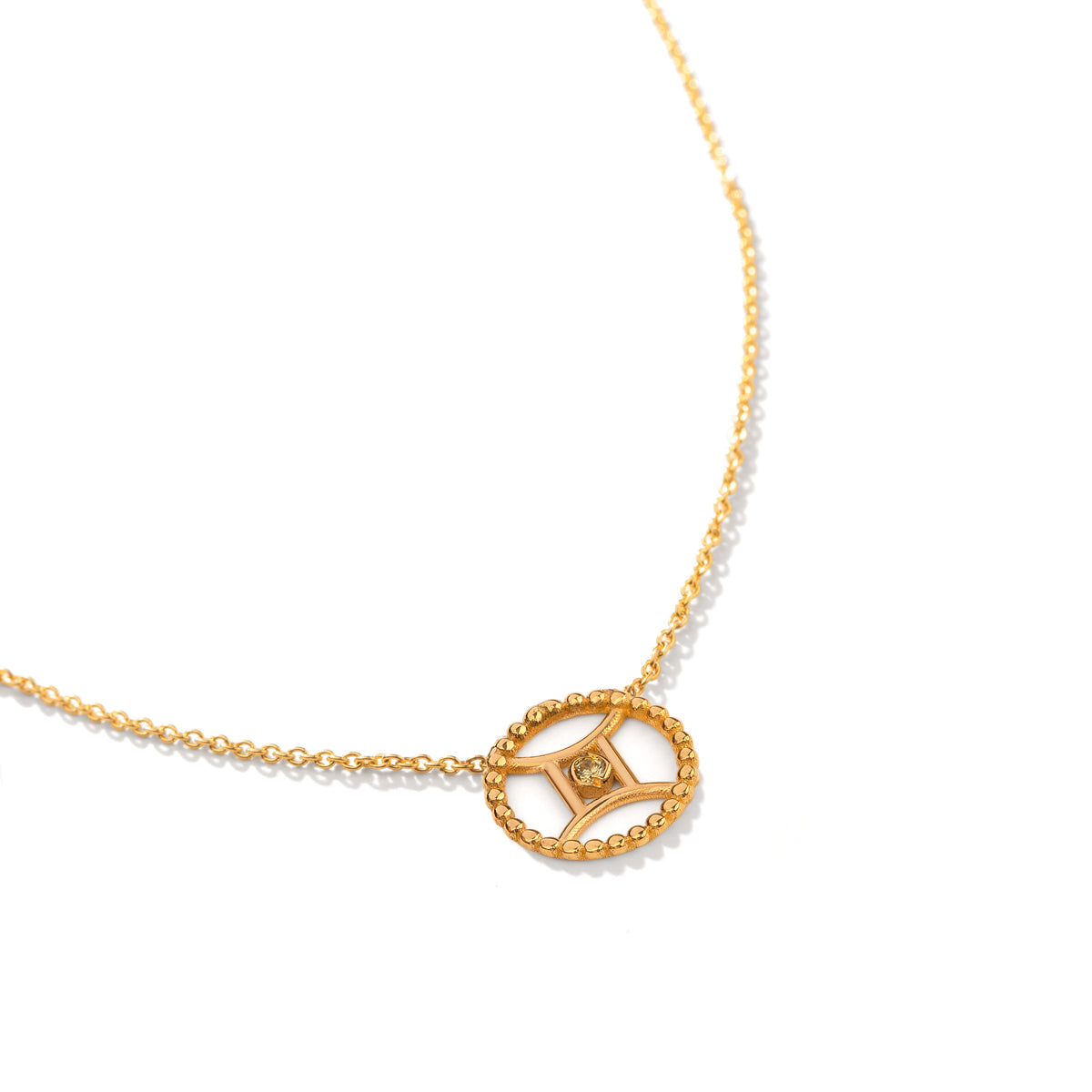 هذه القلادة الكلاسيكية بعلامة برج الجوزاء المصنوعة من الذهب عيار 18 قيراط هي الطريقة المثالية للتعبير عن ولائك وإحساسك بالأناقة. القلادة مصنوعة من مواد عالية الجودة لمظهر وملمس خالدين. أظهر قوتك واحتضن شخصيتك الفردية مع قلادة Gemini Gem.