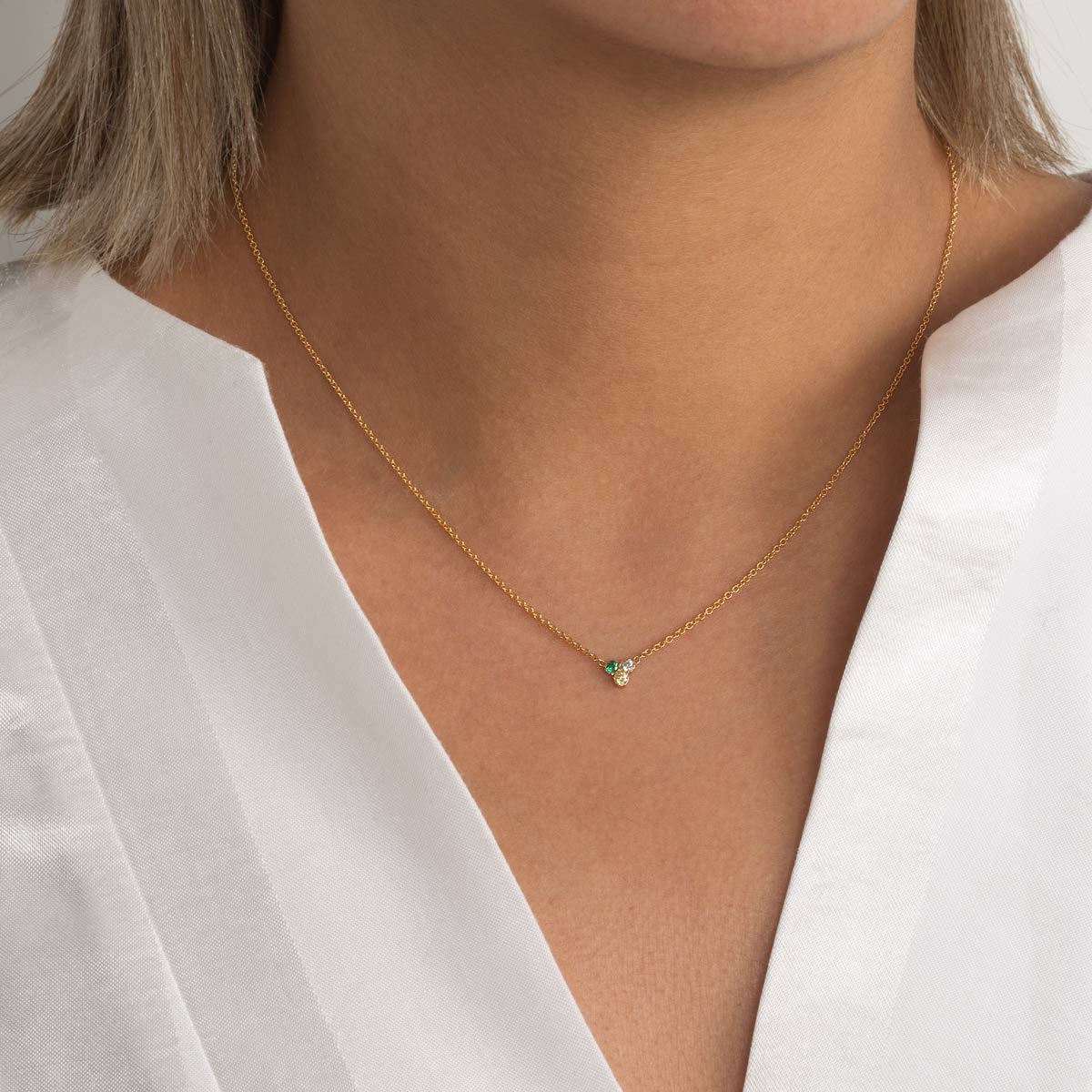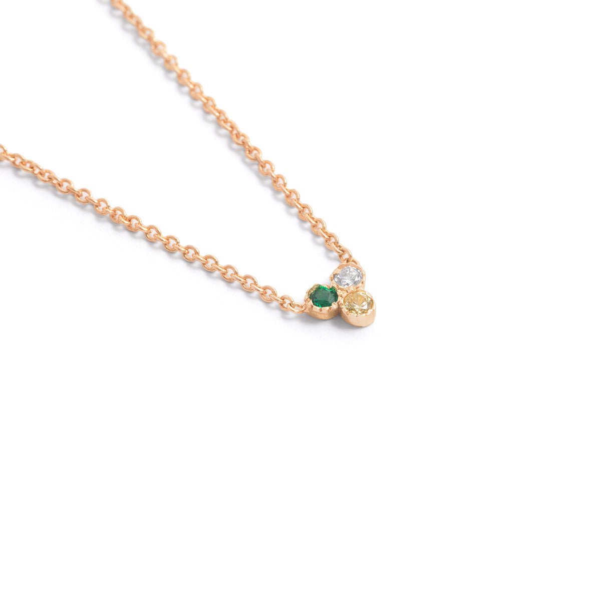 انغمس في الأناقة الفاخرة لقلادة المثلث المرصعة بالجواهر. تتميز هذه القلادة المصنوعة من الذهب عيار 18 قيراط بشكل مثلث مذهل مزين بأحجار ملونة نابضة بالحياة. يضيف التصميم المرتبط لمسة من الرقي، مما يجعل هذه القطعة قطعة يجب اقتناؤها لأي فرد مواكب للموضة. ارتقي بأسلوبك مع قلادة المثلث المرصعة بالجواهر.