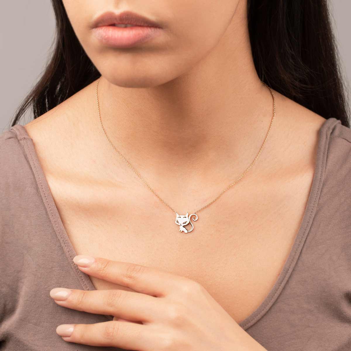 ارتقِ بمظهرك مع قلادة القطة المينا. مصنوعة من الذهب الصلب عيار 18 قيراطًا، تتميز هذه القلادة بقلادة قطة ساحرة مزينة بمينا بيضاء جميلة. أضف لمسة من الرقي والفخامة إلى أي مظهر مع هذه القطعة الحصرية.