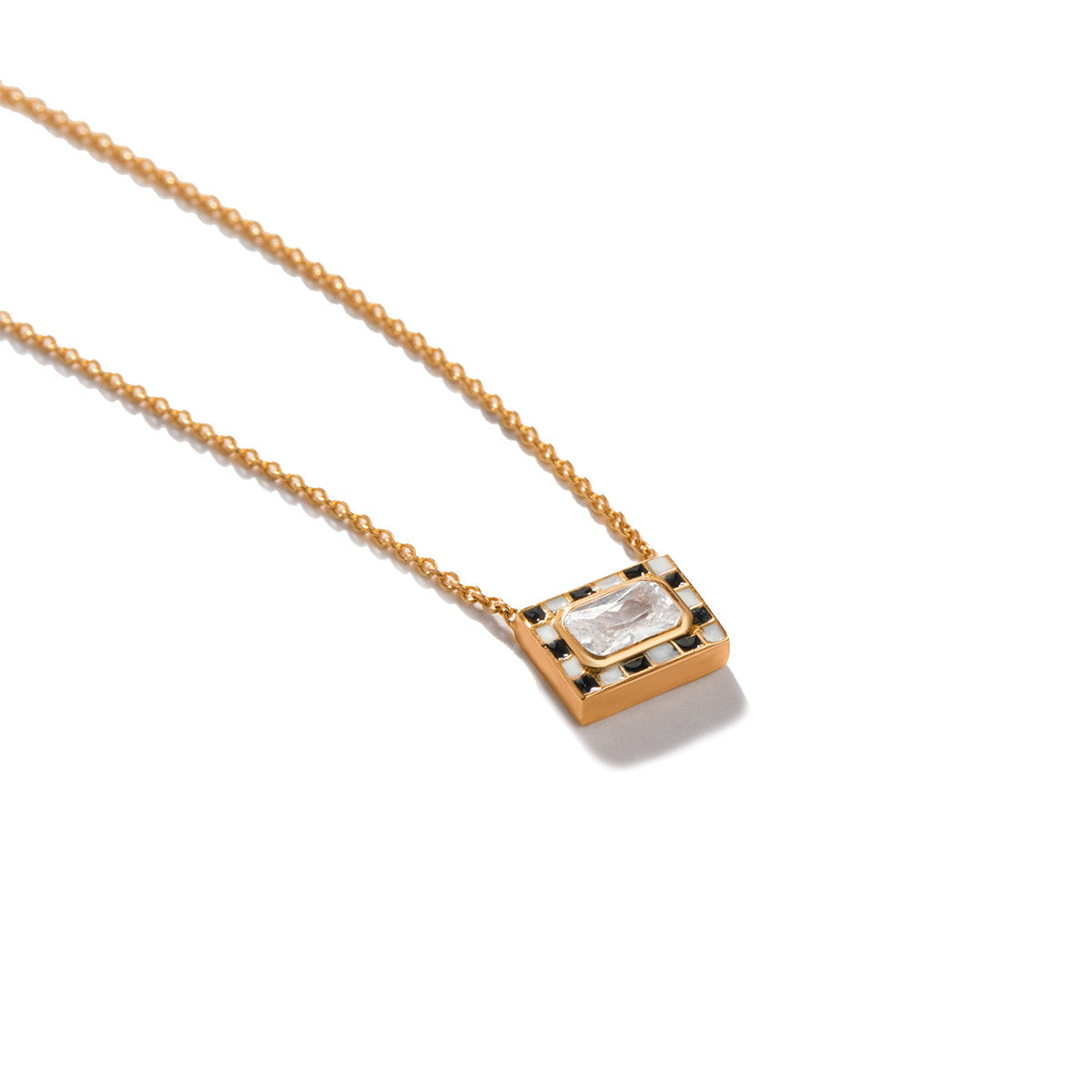 أضف لمسة من الرقي والفخامة إلى مظهرك مع قلادة ليندا تشين. صُنعت هذه القلادة من مينا الذهب عيار 18 قيراطًا ومزينة بالألماس الزمردي، وهي تحفة فنية حقيقية. ارتقِ بأسلوبك واجذب الأنظار بهذه القطعة الحصرية.