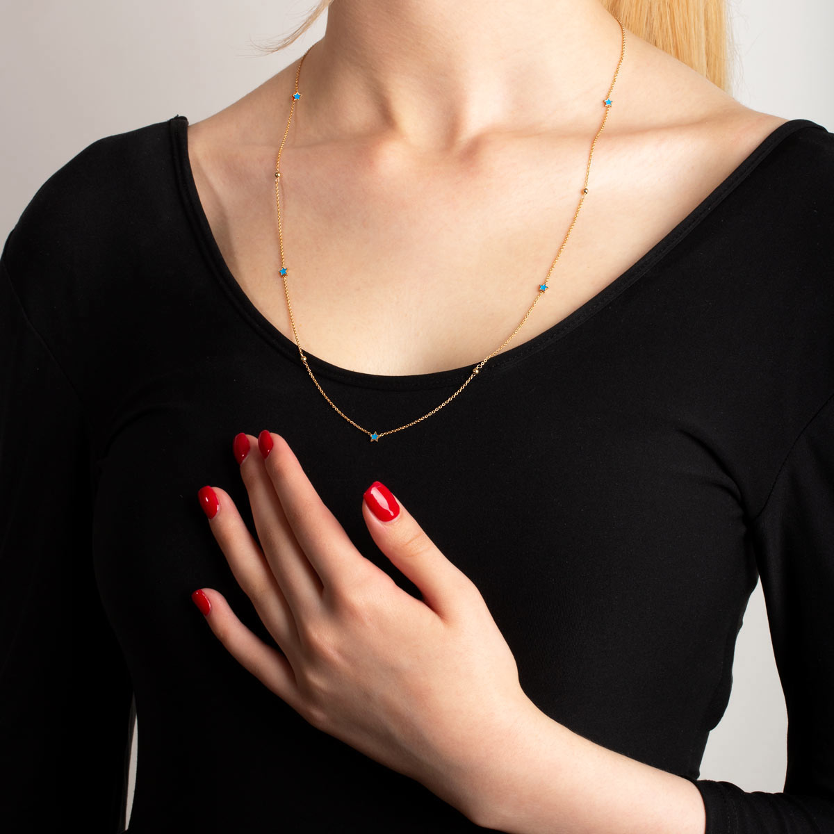 استمتعي بالفخامة مع قلادة سلسلة أورب ونجمة. مصنوعة من الذهب عيار 18 قيراطًا والمينا، هذه القلادة هي رمز للأناقة والرقي. أضيفي لمسة من الفن إلى أي زي مع تفاصيل أورب ونجمة دقيقة. عززي أسلوبك واشعري بالتميز مع هذه القطعة الفاخرة.