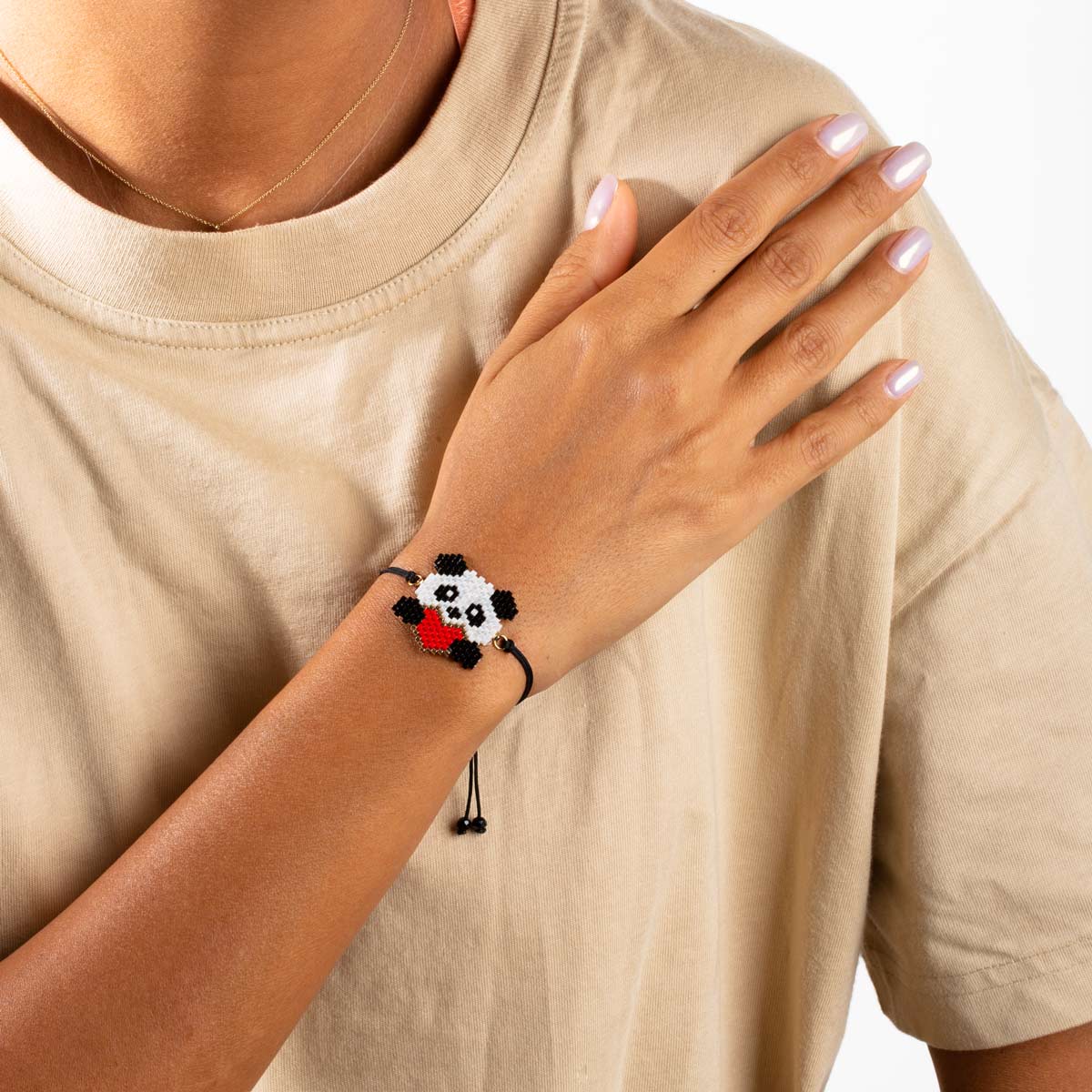 هذا السوار الأنيق المصنوع من الخرز على شكل باندا مصنوع من الذهب الصلب عيار 18 قيراطًا، ويتميز بنسيج خرزي فريد وسوار من القطن الناعم. إضافة خالدة لأي مجموعة مجوهرات، يضفي السوار لمسة من الرقي والفخامة على أي مظهر. ارتقِ بأسلوبك مع هذه القطعة الحصرية.
