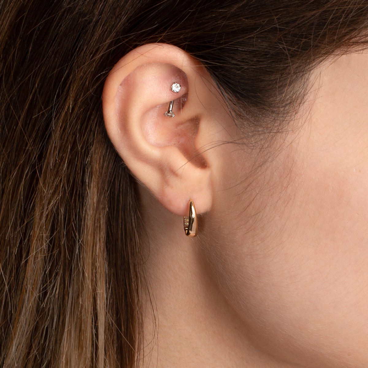 استمتعي بالفخامة مع أقراط Podmira Huggie Hoop. صُنعت أقراط Huggie هذه من الذهب الصلب عيار 18 قيراطًا وتتميز بشكل قضيب فريد يضفي لمسة من الرقي على أي مظهر. ارتقِ بأسلوبك مع هذه الأقراط الحصرية والأنيقة.