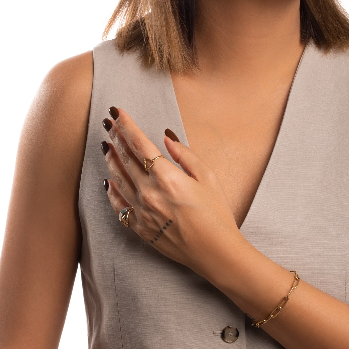 استمتعي بالبساطة الفاخرة مع خاتمنا المثلثي الرفيع الملتوي الساق. مصنوع من الذهب الصلب عيار 18 قيراطًا، يتميز هذا الخاتم بشريط ملتوي بدقة وظل مثلث أنيق. ارتقِ بأسلوبك وأضف لمسة من الرقي إلى أي زي مع هذه القطعة الحصرية.
