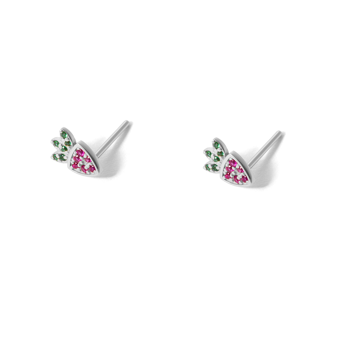 نقدم لك أقراط الفراولة الرائعة المصنوعة من الذهب الصلب عيار 18 قيراطًا والمزينة بأحجار كريمة خضراء ووردية نابضة بالحياة. هذه الأقراط الأنيقة مستوحاة من شكل الفراولة الأيقوني، مما يضيف لمسة من الرقي والفخامة إلى أي مظهر. ارتقِ بأسلوبك مع هذه الأقراط الحصرية.