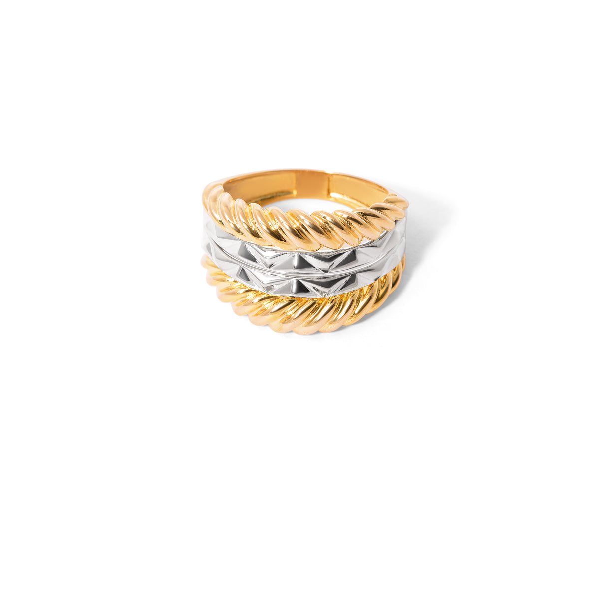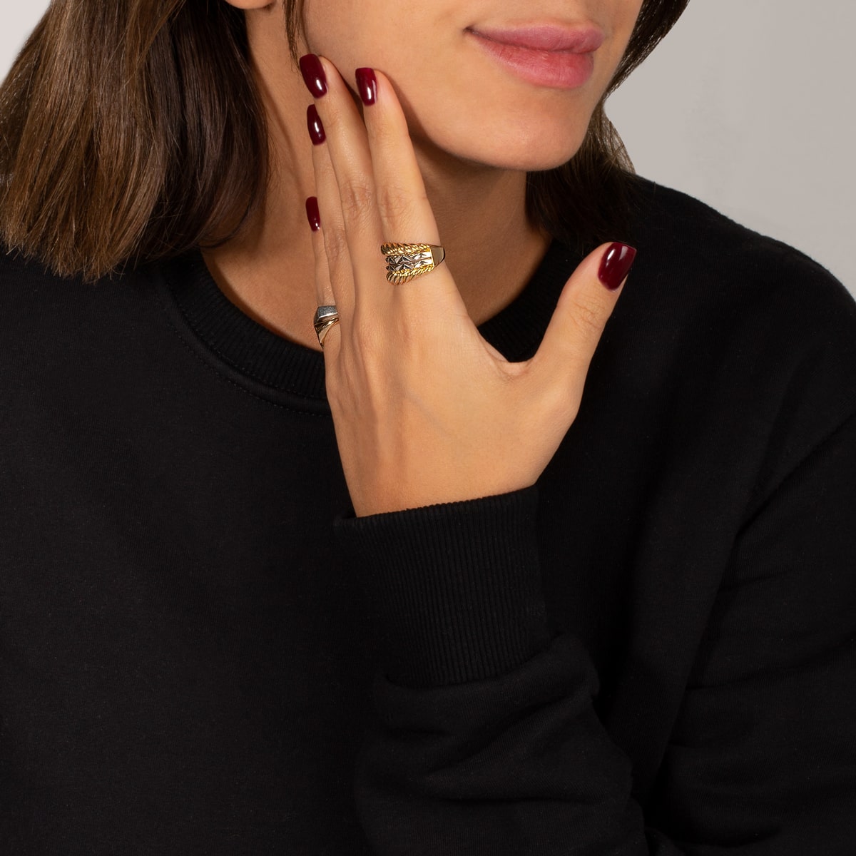 استمتعي بفخامة خاتم تارا المصنوع من الذهب عيار 18 قيراطًا لإضفاء لمسة فاخرة. يتميز بتصميمه المعقد ومواده الفاخرة التي تنضح بالأناقة والرقي. استمتعي بجمال هذا الخاتم الذي يجسد جوهر الفخامة والأناقة.