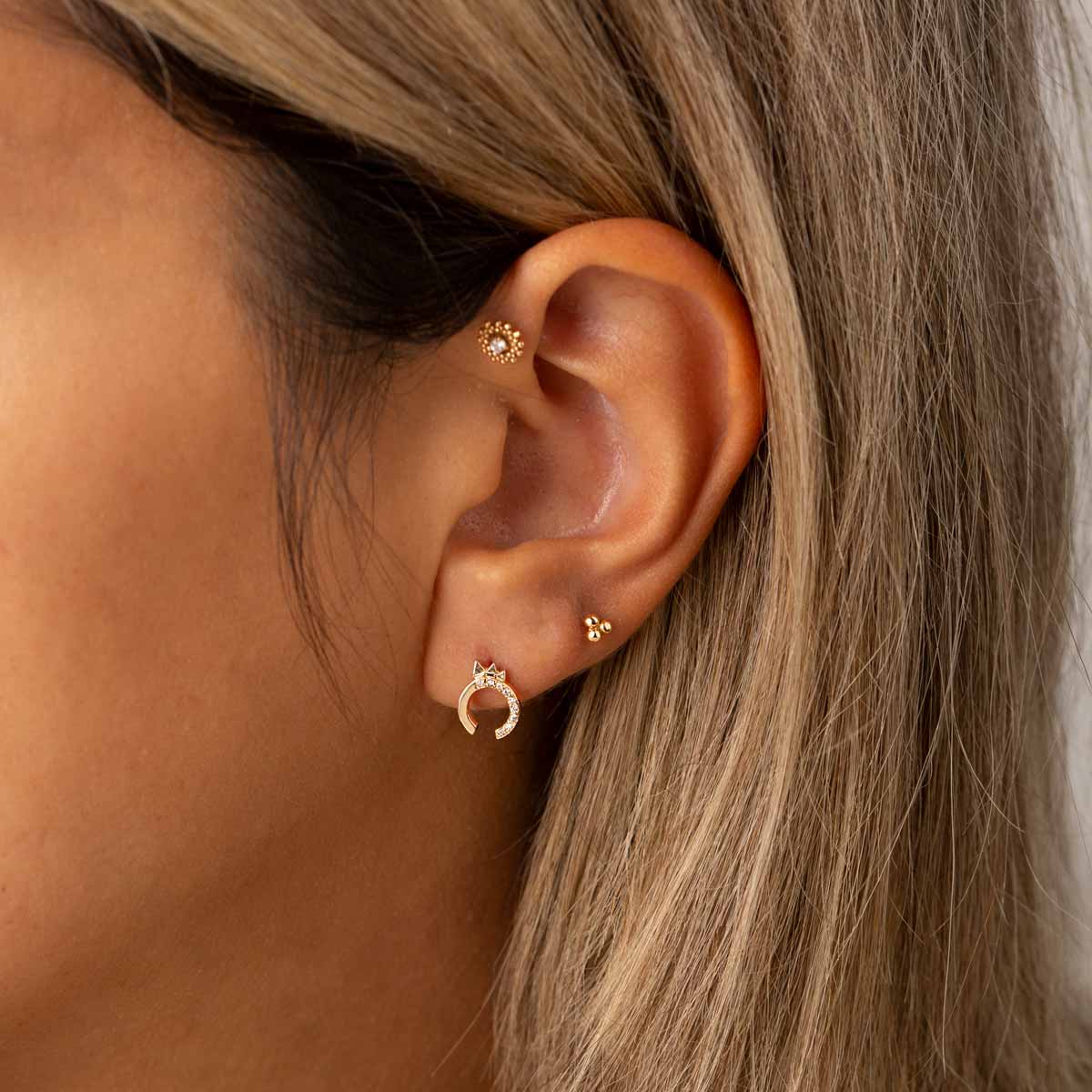 تحولي إلى أميرة مع أقراطنا الفاخرة على شكل تاج. مصنوعة من الذهب الصلب عيار 18 قيراطًا وتتميز بقطع ألماس دائرية مبهرة، هذه الأقراط مستوحاة من أناقة تاج تاج. جربي الشعور بأنك مزينة بهذه الأقراط الرائعة.