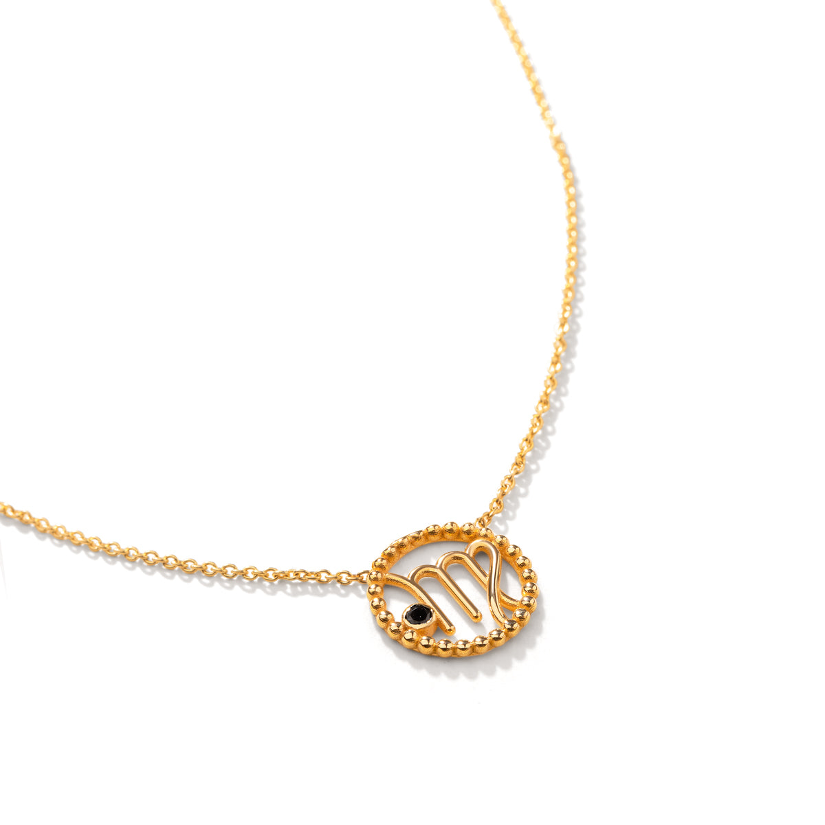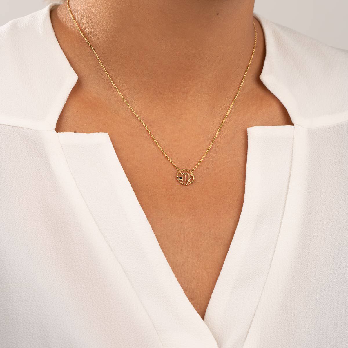 اظهري بمظهر أنيق وأظهر برجك من خلال قلادة برج العذراء الجميلة المصنوعة من الذهب عيار 18 قيراط. مصنوع بعناية، ومن المؤكد أنه سيضيف لمسة كلاسيكية خالدة إلى أي ملابس. مع التصميم الأنيق، يمكنك عرض علامتك بشيء مميز.