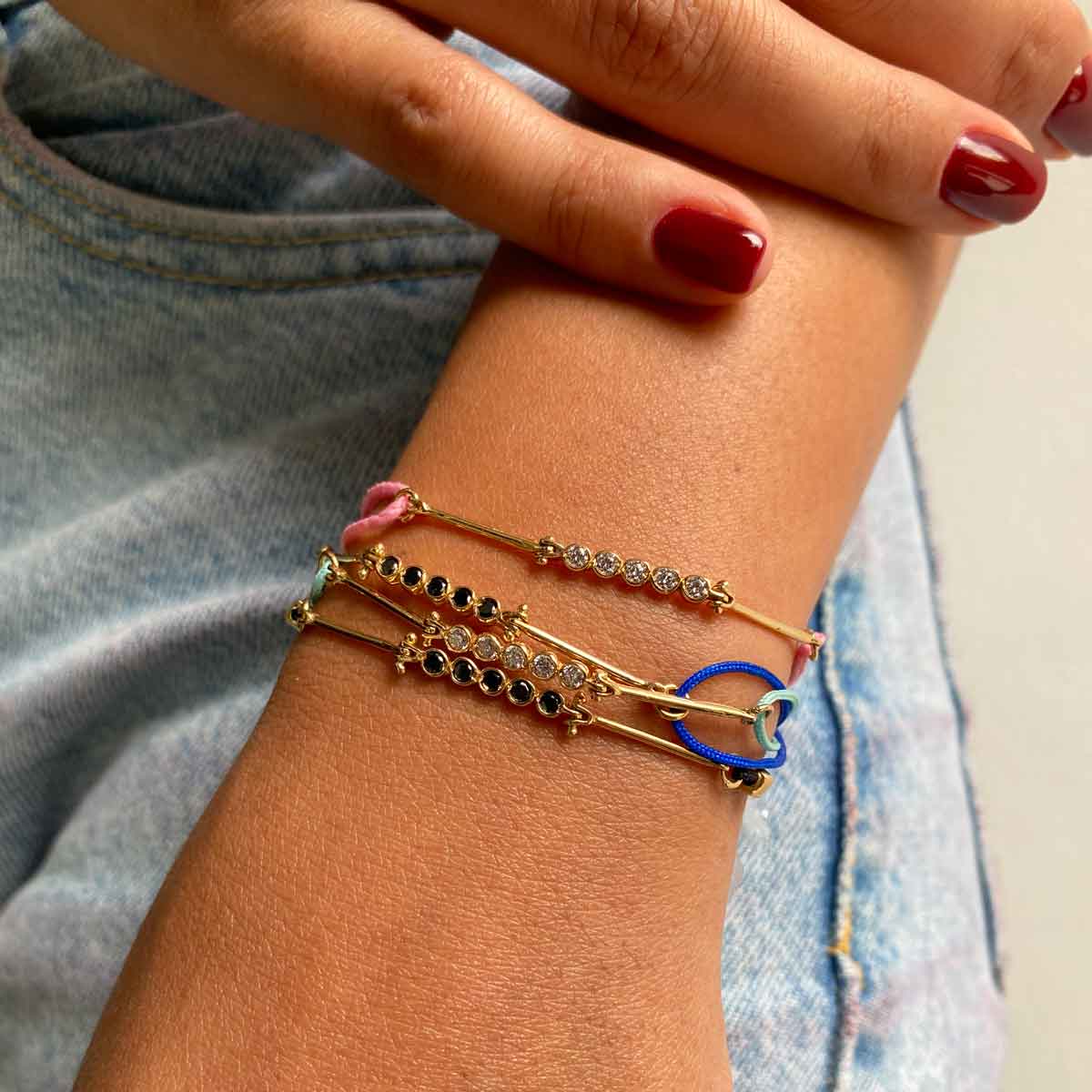 Elevate your style with our White Sparkle Cord Bracelet. Crafted with 18k gold and shimmering white diamonds, this exquisite piece adds a touch of luxury to any outfit. Perfect for both casual and formal occasions, it's the perfect blend of sophistication and elegance. Elevate your look and shine bright with our White Sparkle Cord Bracelet.