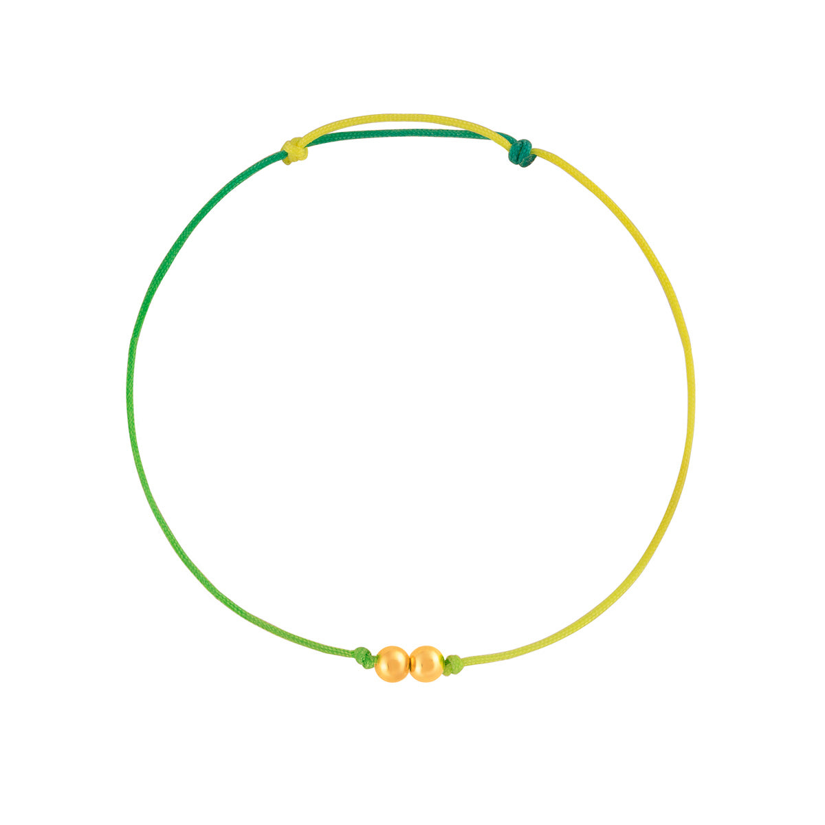 Add a touch of luxury to your everyday style with our 2 Beads Cord Bracelet. Crafted from 18K solid gold, this bracelet features two delicate gold balls on a chic cord. Elevate any outfit and make a statement with this exclusive piece.