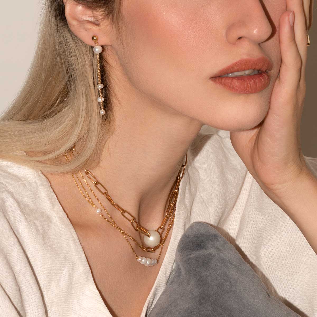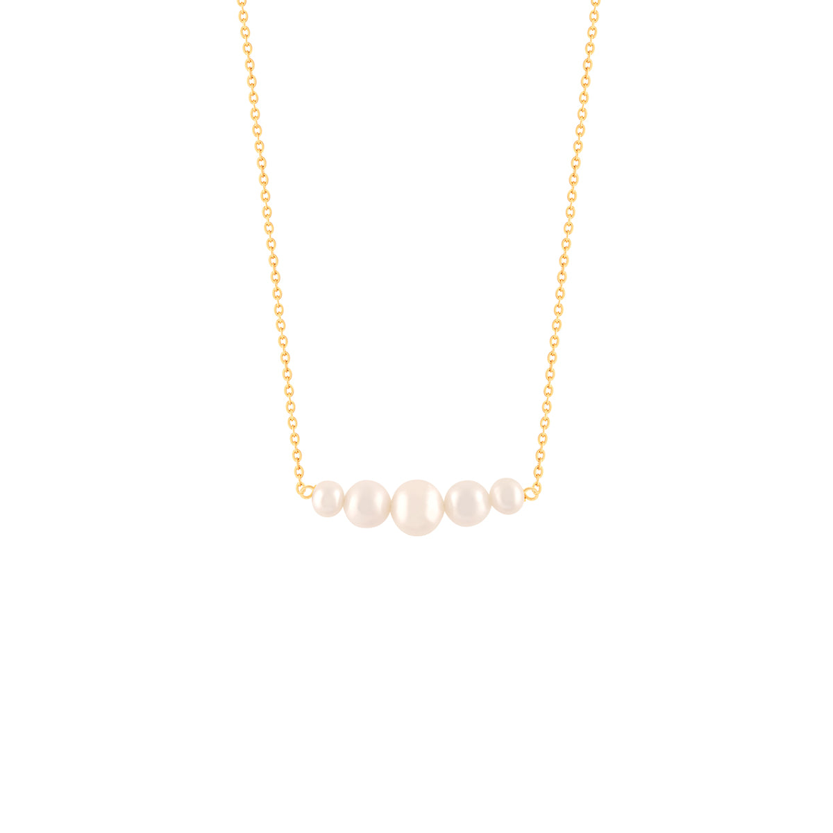 Elevate your style with our 5 Pearl Necklace. Crafted with 18 k gold, this timeless piece exudes elegance and luxury. Adorn yourself with the lustrous pearls and make a statement of sophistication. Perfect for any occasion, this necklace is a must-have for every fashion-forward individual.
