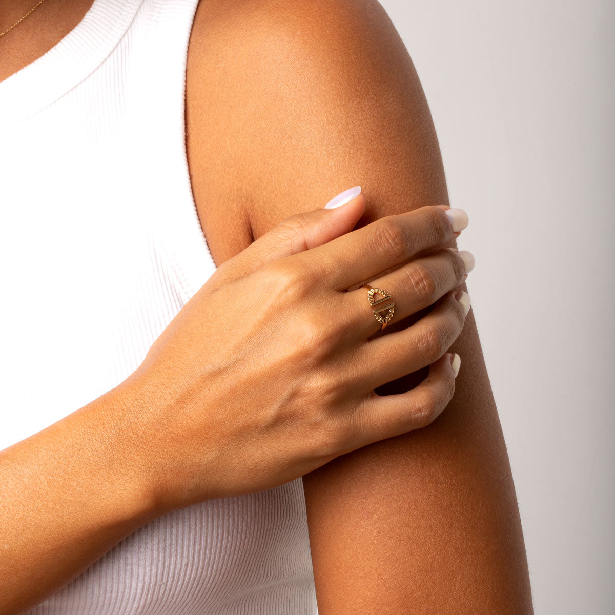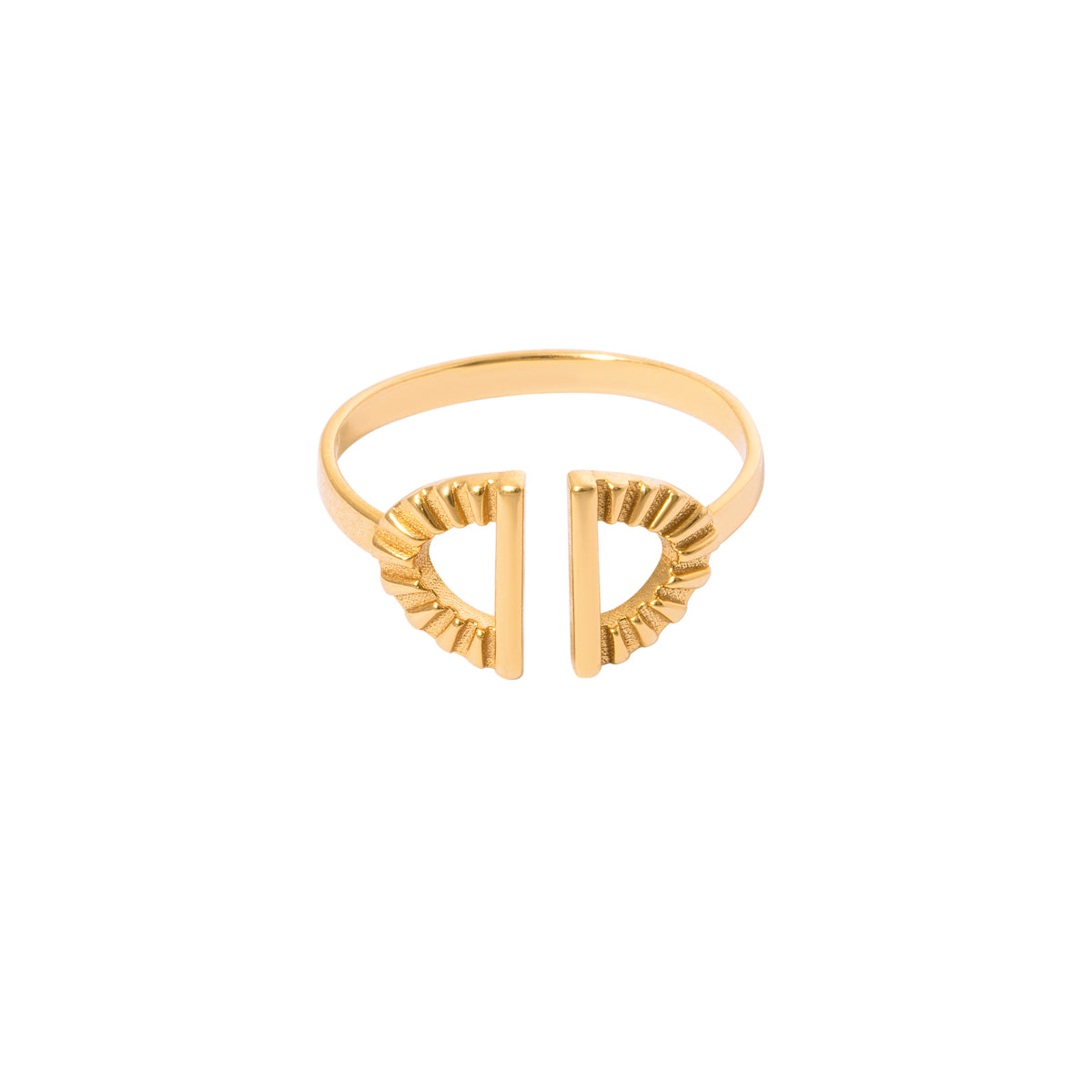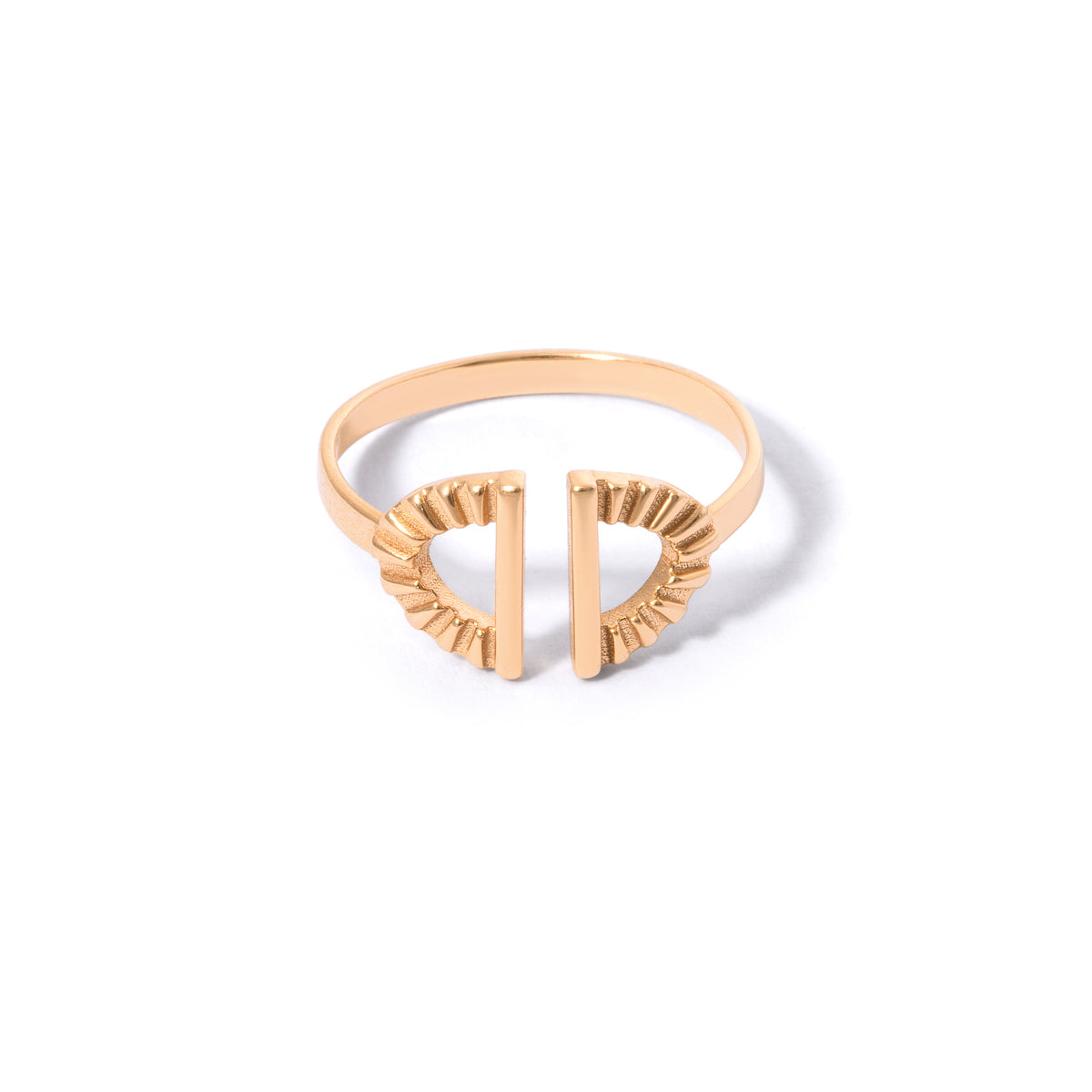 Experience luxury like never before with our Sun Ring. Crafted from 18k gold, this exquisite piece will radiate elegance and sophistication. Perfect for any occasion, this ring is sure to make you feel like a shining star. Elevate your style and add a touch of glamour with our Sun Ring.