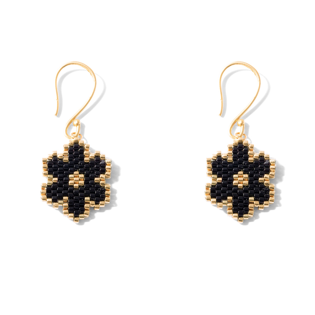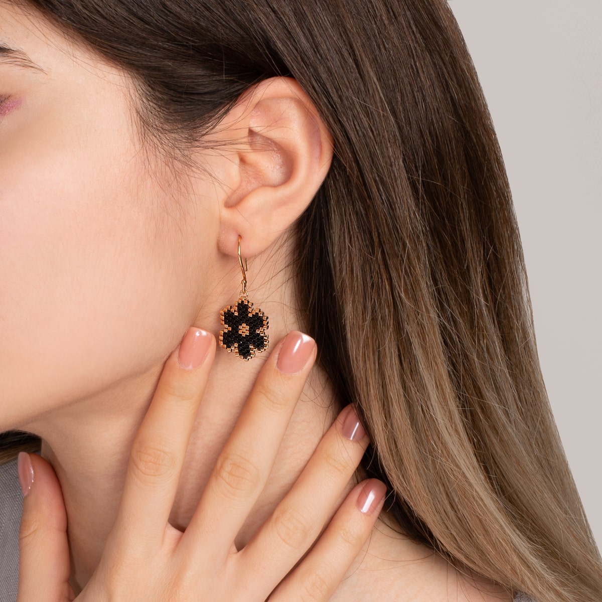 Indulge in luxury with our Black Flower Dangle Earrings. Crafted with exquisite 18k gold, these earrings add a touch of sophistication to any outfit. The striking black flower design exudes elegance and refinement, making them a must-have for any fashion-forward individual. Elevate your style with these exclusive and timeless earrings.