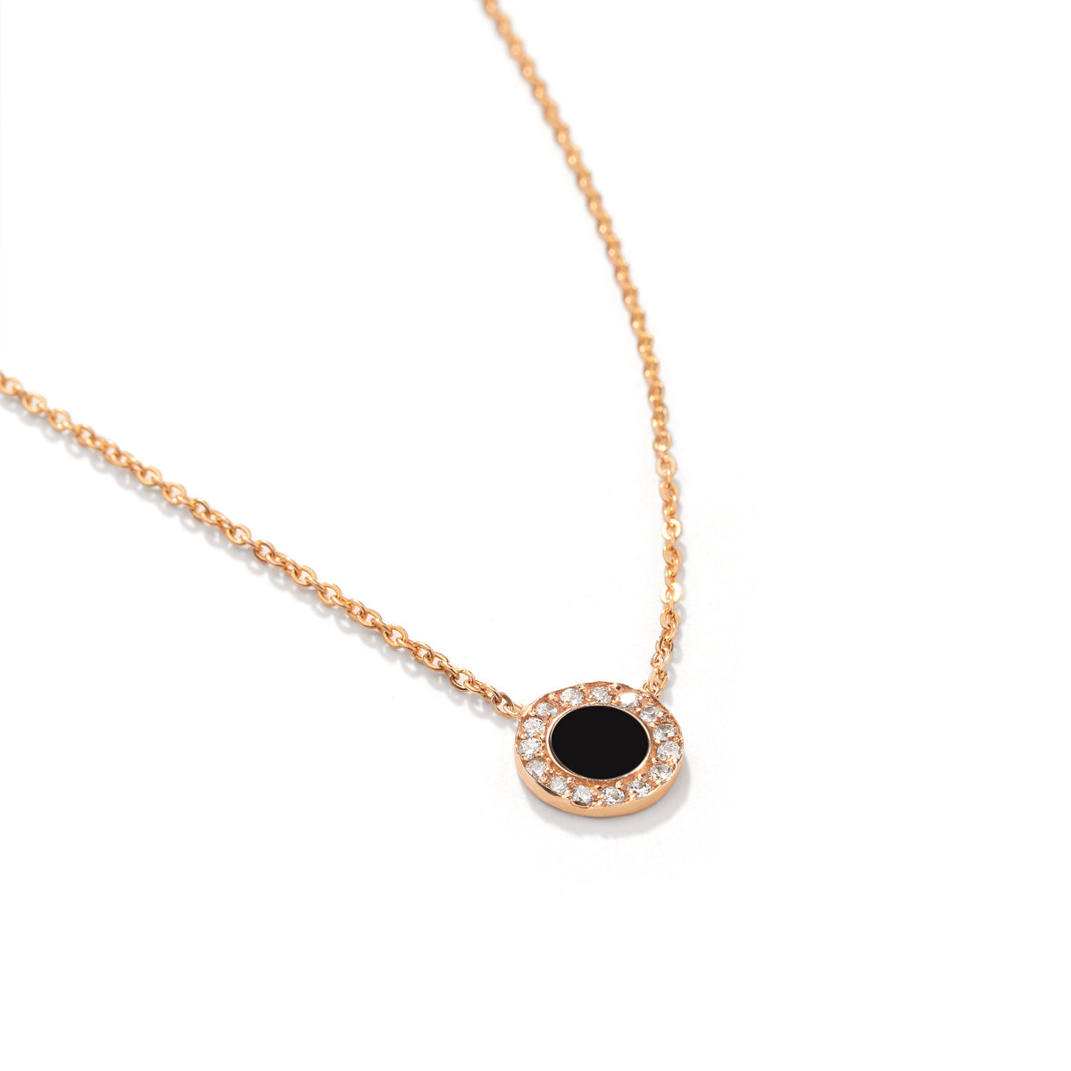 Introducing the Black Glare Enamel Necklace, crafted from 18k solid gold and adorned with a round cut diamond. The elegant black enamel detailing is inspired by the captivating glare of light, adding a touch of sophistication and radiance to any outfit. Shine and bright with this luxurious and exclusive piece.