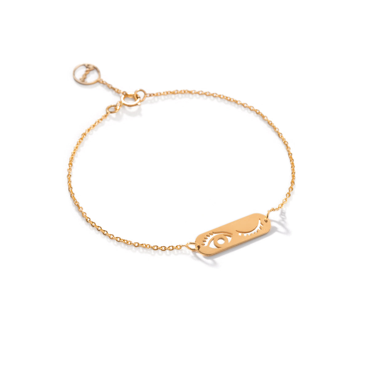 Introducing the exquisite Blink Bracelet, crafted with 18K solid gold, featuring a delicate chain and a rectangular pendant intricately carved with the iconic "blink" design. Complete your look with this exclusive piece that exudes sophistication and luxury. Elevate your style with the Blink Bracelet.