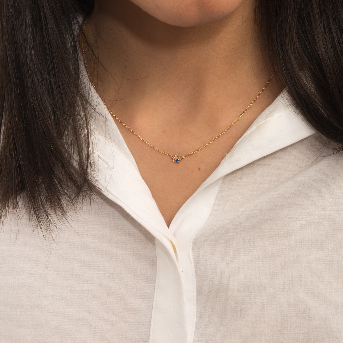 Indulge in luxury with our Blue Eye Chain Necklace, crafted from 18k solid gold and adorned with a rare blue gemstone in the shape of an eye. Elevate your style and add a touch of elegance to any outfit with this exclusive piece.