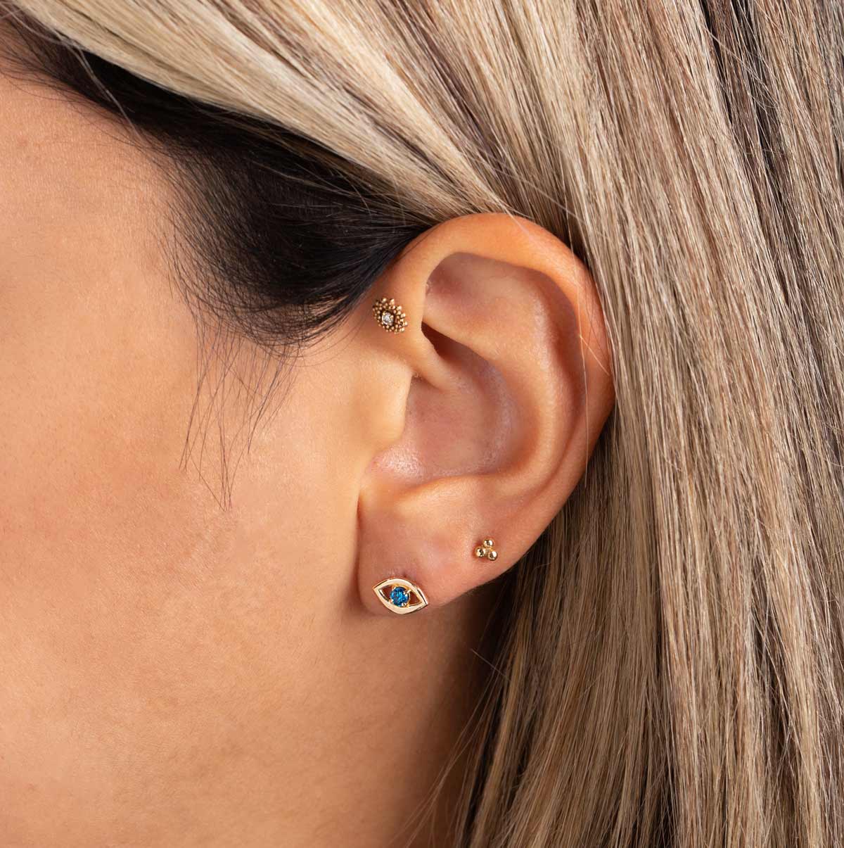 Enhance your style with our Blue Eye Stud Earrings, crafted with 18k solid gold and adorned with stunning blue gemstones. Inspired by the captivating shape of the eye, these earrings are a must-have for any luxury fashion lover.
