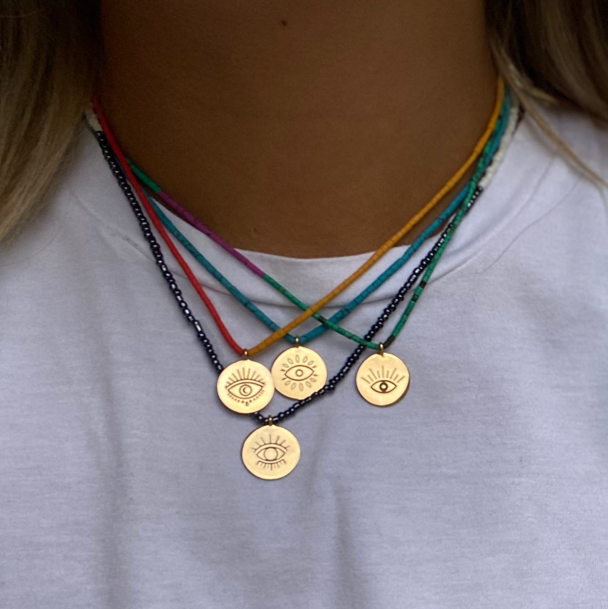 Introducing the Bright Eye Turquoise Necklace, crafted with 18k solid gold and featuring a mesmerizing turquoise necklace. The eye design pendant adds a touch of sophistication and elegance. Elevate any outfit with this unique and luxurious piece that symbolizes protection and good fortune.