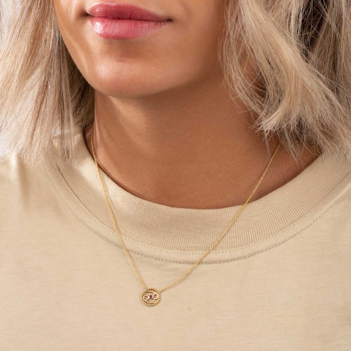 This delicate 18k gold Cancer Gem necklace is a tribute to the zodiac sign. Sparkling and detailed, this necklace is a timeless symbol of your star sign. It's the perfect way to show your pride in your zodiac sign.