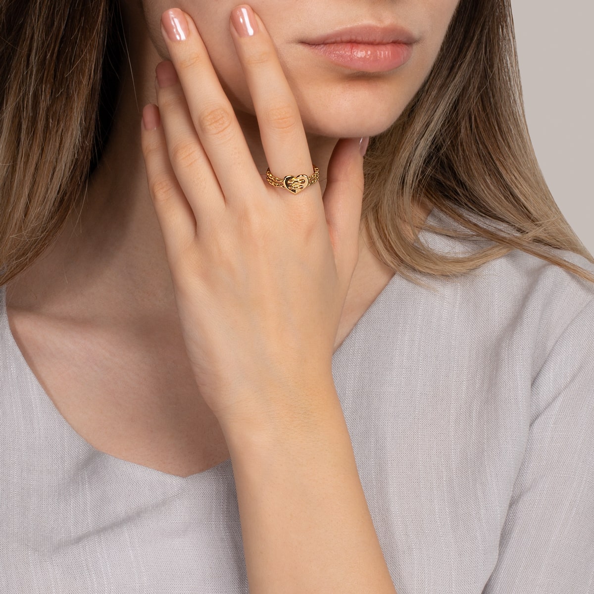 Indulge in luxury with our 18k solid gold chained heart ring. Crafted with intricate detail, this ring showcases a delicate heart suspended by a delicate chain, symbolizing eternal love and connection. Elevate your style and make a statement with this exclusive piece.
