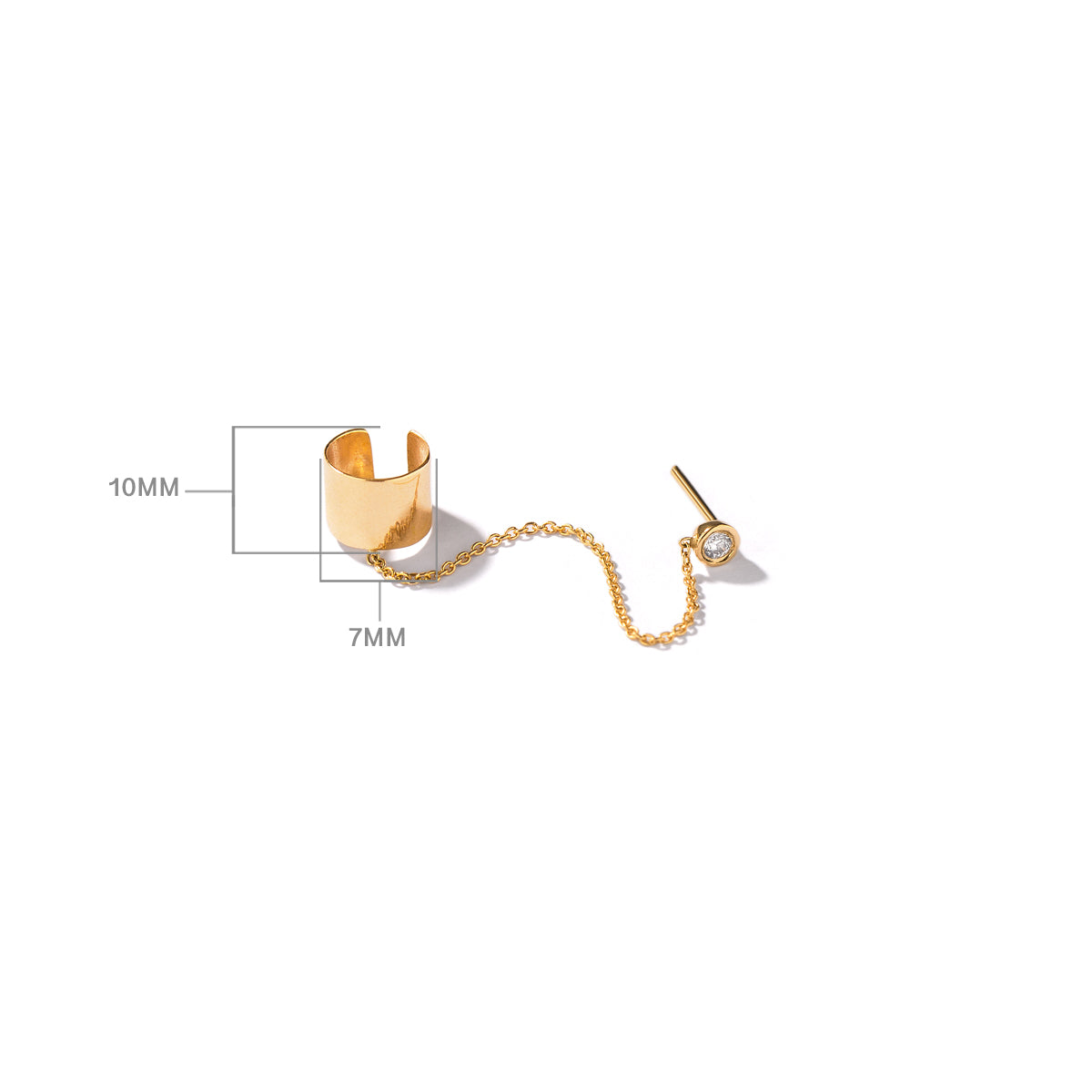 Add a touch of luxury and sophistication to your style with our Clip Earcuff with Luna Chain. Crafted with 18K gold, this elegant piece features a chic EarCuff and a delicate linked stud earring. Elevate your look and make a statement with this exclusive accessory.