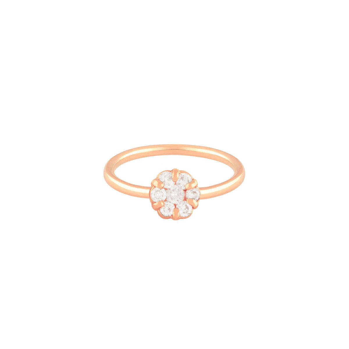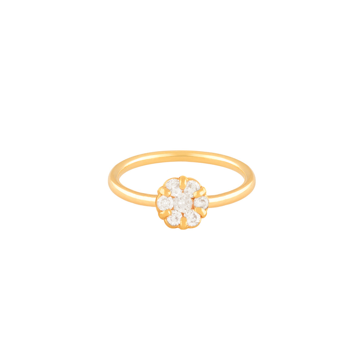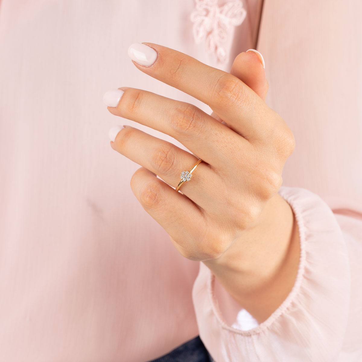 Indulge in luxury with our Diamond Flower Ring. Made of 18k solid gold, this ring features round cut diamonds, each one carefully placed to mimic the delicate petals of a flower. Elevate any outfit with this elegant and exclusive piece.