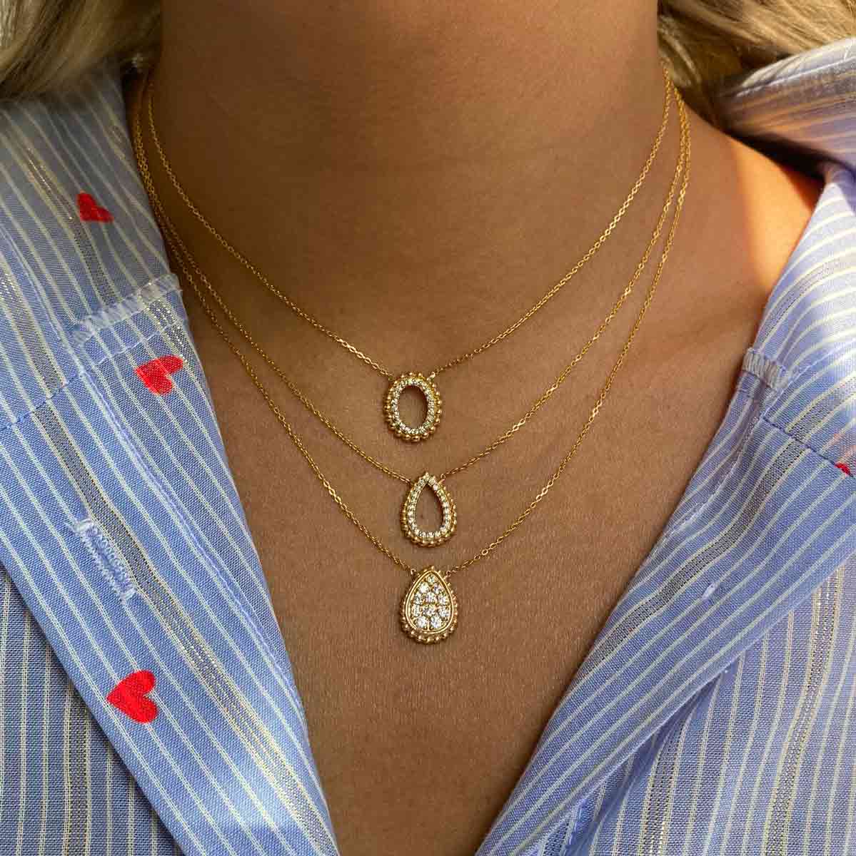 Indulge in luxury with our Diamond Halo pendant. Crafted with Crafted from 18K solid gold, a circle halo pendant adorned with exquisite natural diamonds takes center stage., this circle-shaped pendant is adorned with fine, natural diamonds for a truly exquisite look. Elevate any outfit with the elegance and sophistication of this stunning piece.