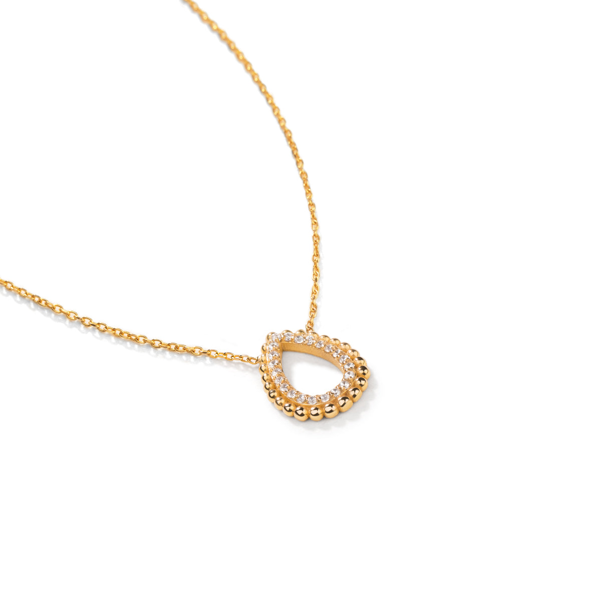 Indulge in the luxury of our Dimond Drop Necklace. Crafted from 18K gold, the drop-shaped frame pendant is adorned with fine natural diamonds, making it a symbol of elegance and sophistication. Elevate any outfit with this exquisite piece.