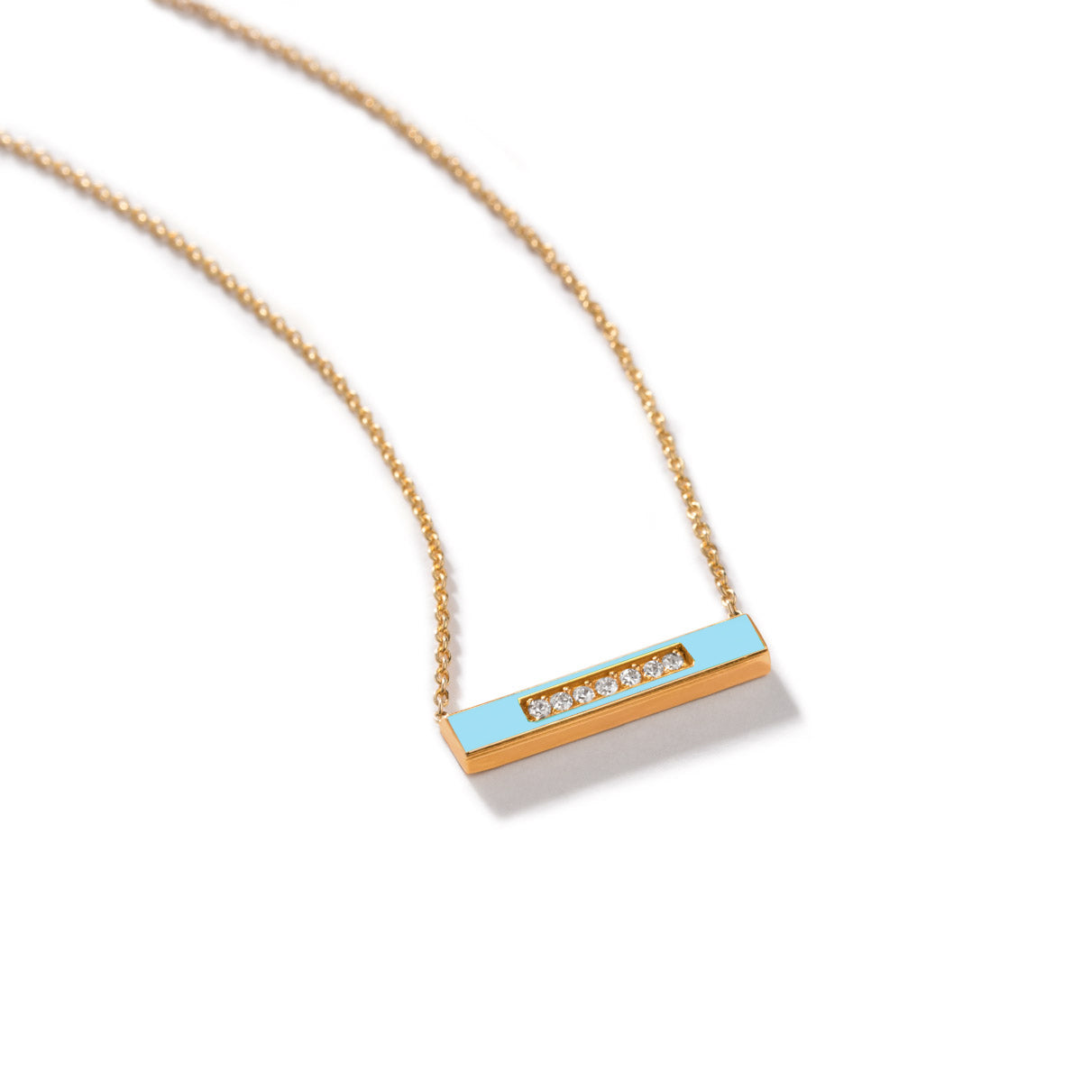 Wrap yourself in the epitome of love with our 18k solid gold necklace. Adorned with round cut diamonds and colorful enamel, each piece is inspired by the timeless beauty of love. Elevate your sophistication with our exclusive necklace, a true work of art.