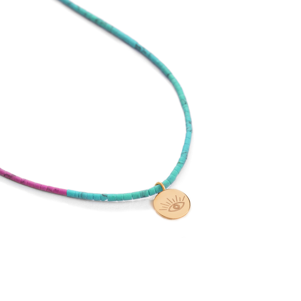 Introducing our EYE Stone Necklace, made from 18k solid gold and adorned with vibrant and eye-catching stones. The perfect accessory to elevate any outfit and make a statement. Stand out from the crowd and exude elegance and sophistication with this unique necklace.
