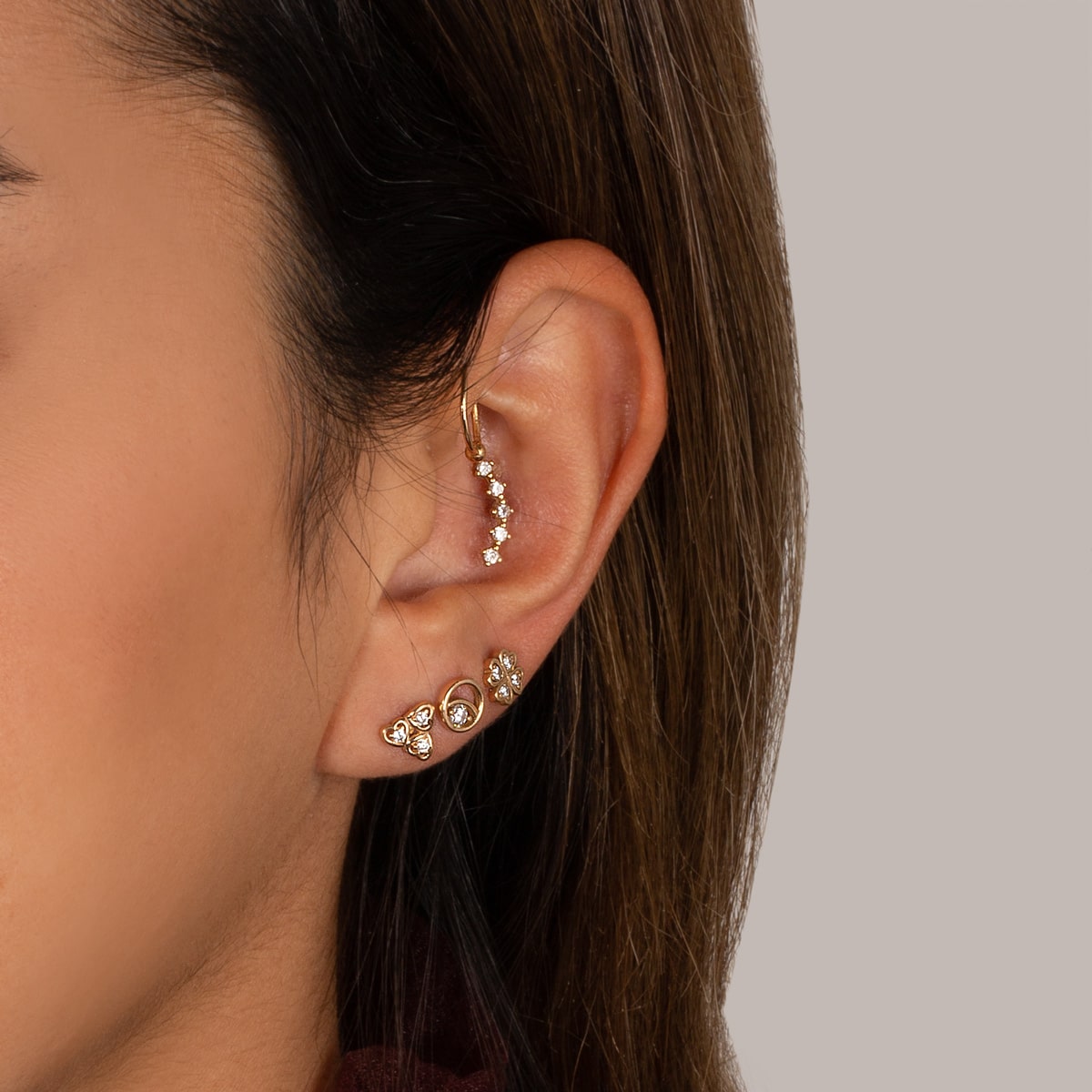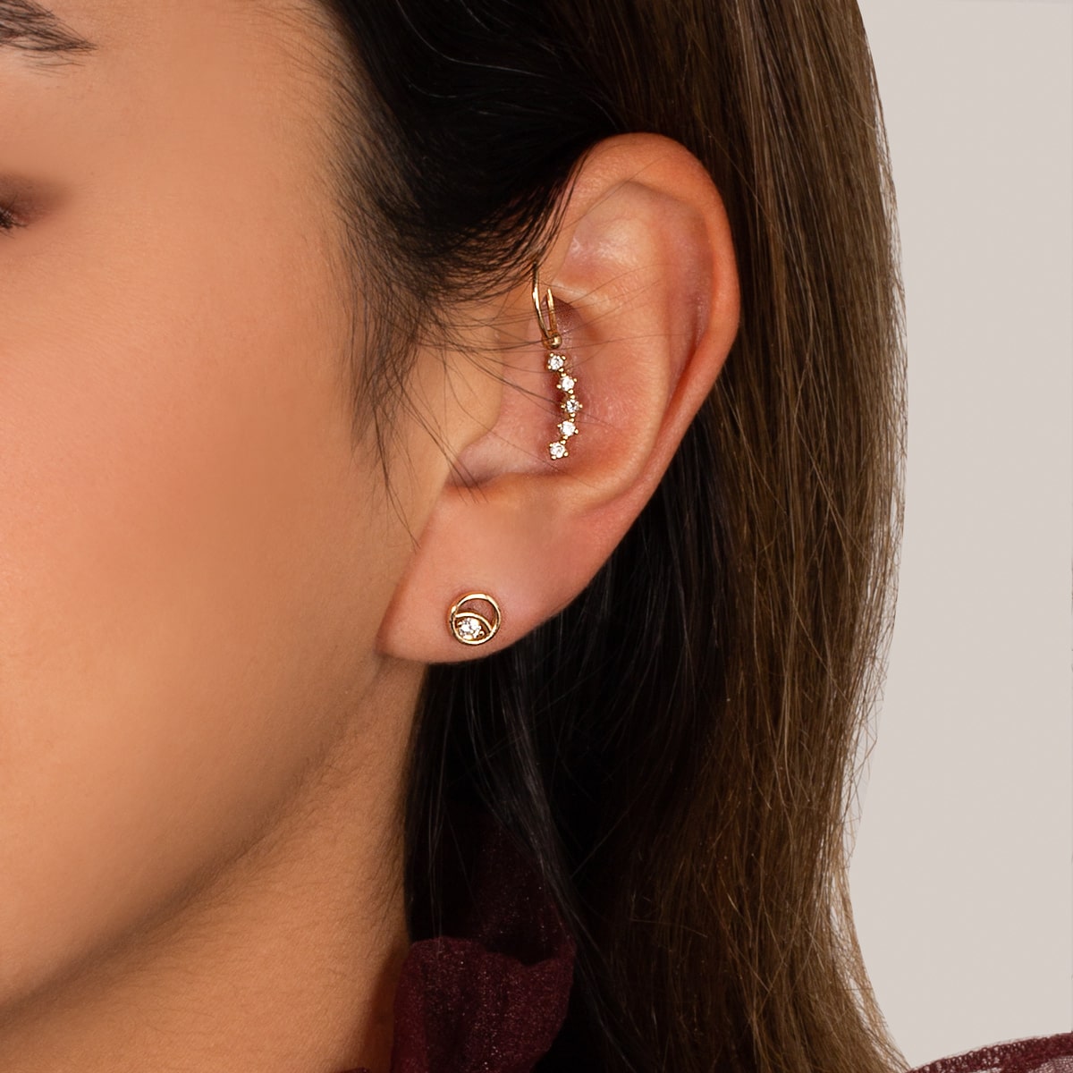 Introducing our Eye Stud Earrings, made with 18k solid gold and adorned with exquisite round cut diamonds. Inspired by the alluring shape of the eye, these earrings are a symbol of style and sophistication. Enhance any ensemble with the elegant and exclusive beauty of our Eye Stud Earrings.