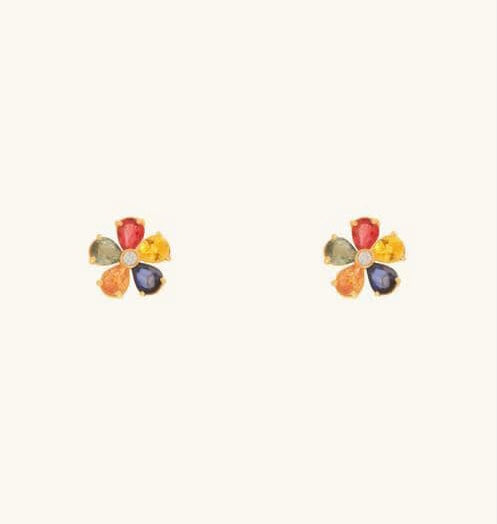 Elevate your style with these Flower Charm Studs, crafted from 18k solid gold and adorned with vibrant precious stones in a charming chamomile design. Their multicolor sparkle adds a delicate touch of nature’s beauty, making them perfect for everyday elegance or special occasions. Durable and timeless, these earrings bring a fresh burst of color and sophistication to any outfit.