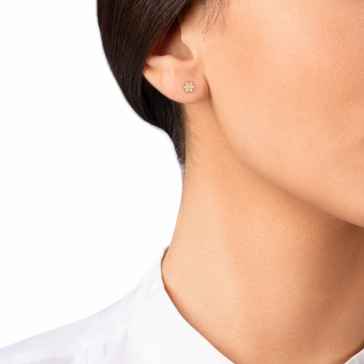 Indulge in the luxurious and artistic world of fashion with our Flower Stud Earring. Made of 18 k gold and adorned with a sparkling diamond, these earrings exude elegance and sophistication. Add a touch of glamour to any outfit with these exquisite flower studs.