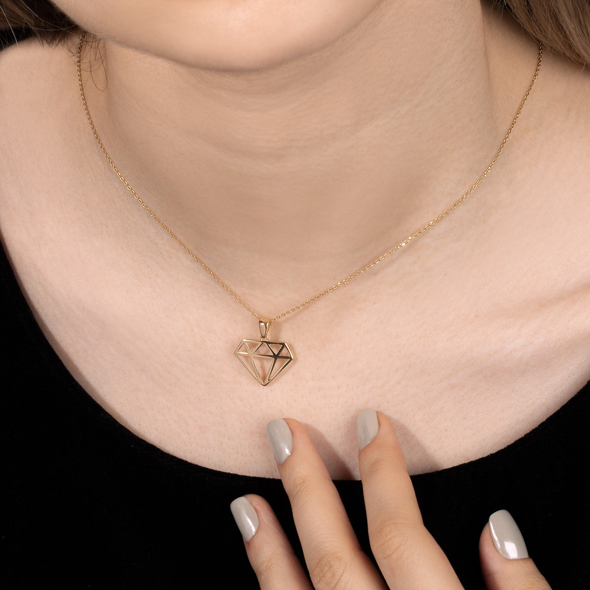 Introducing our Geometric Diamond Necklace Charm, crafted from 18k solid gold. Enhance your look with this sophisticated and exclusive piece, featuring a unique geometric design and sparkling diamonds. Elevate your jewelry collection with this luxurious and timeless charm.