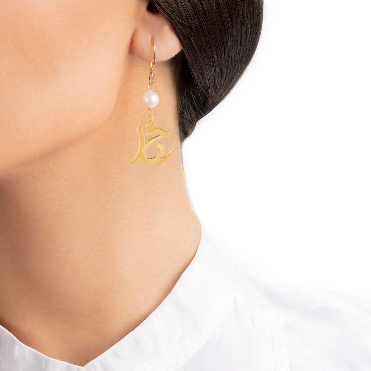 Add a touch of divine elegance to your wardrobe with our God Name Pearl Hoop Earrings. Made with 18k solid gold and adorned with fresh water pearls, these hoops are inspired by the majestic beauty of "خدا" - the ultimate symbol of luxury and sophistication. Elevate any outfit with these heavenly statement pieces.