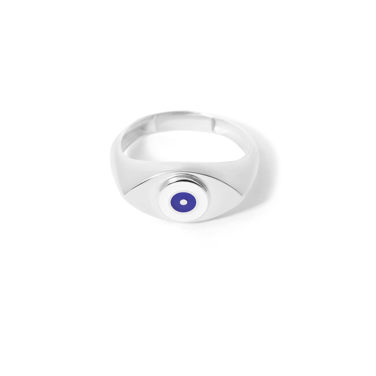 Introducing our Good Eye Ring, crafted from 18k solid gold with an eye signet enamel design. Adorn your finger with this luxurious piece and channel your inner mystique. With the finest materials and exquisite craftsmanship, this ring is a statement of sophistication and elegance.