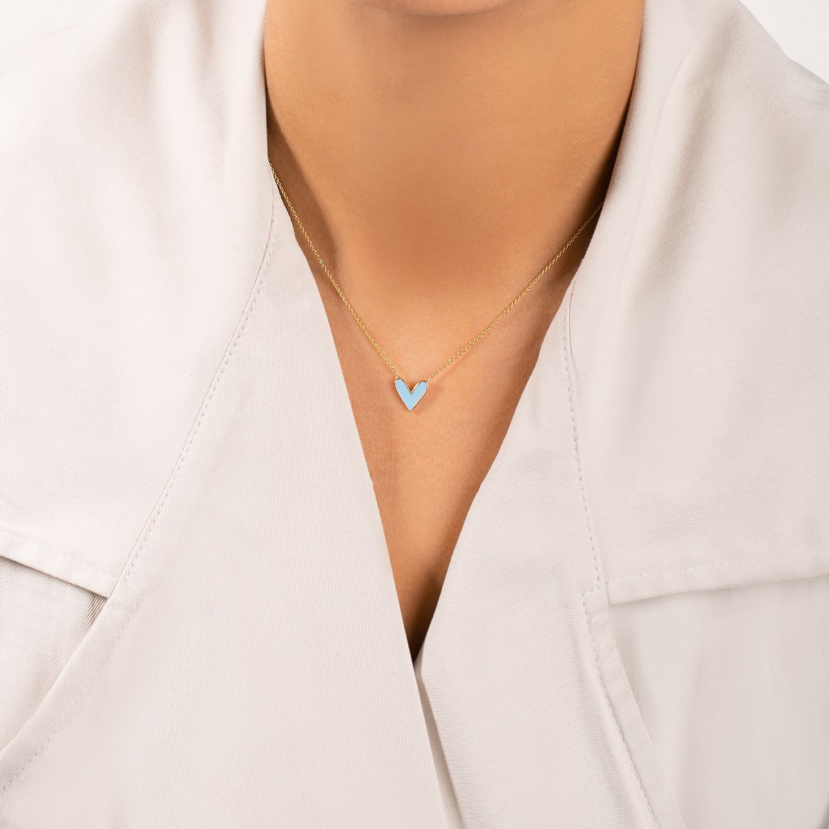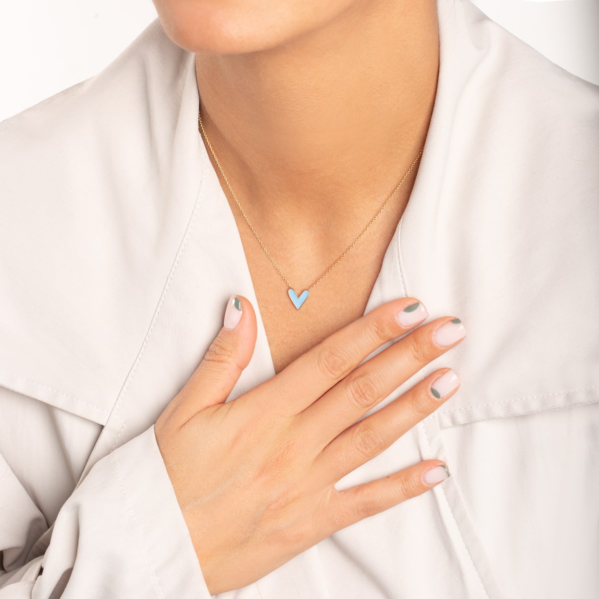 Indulge in luxury with our Green Heart Necklace. Crafted from 18k solid gold, this necklace features a stunning green enamel heart pendant. A symbol of love and beauty, this necklace radiates sophistication and elegance. Elevate any outfit and make a statement with this exclusive piece.