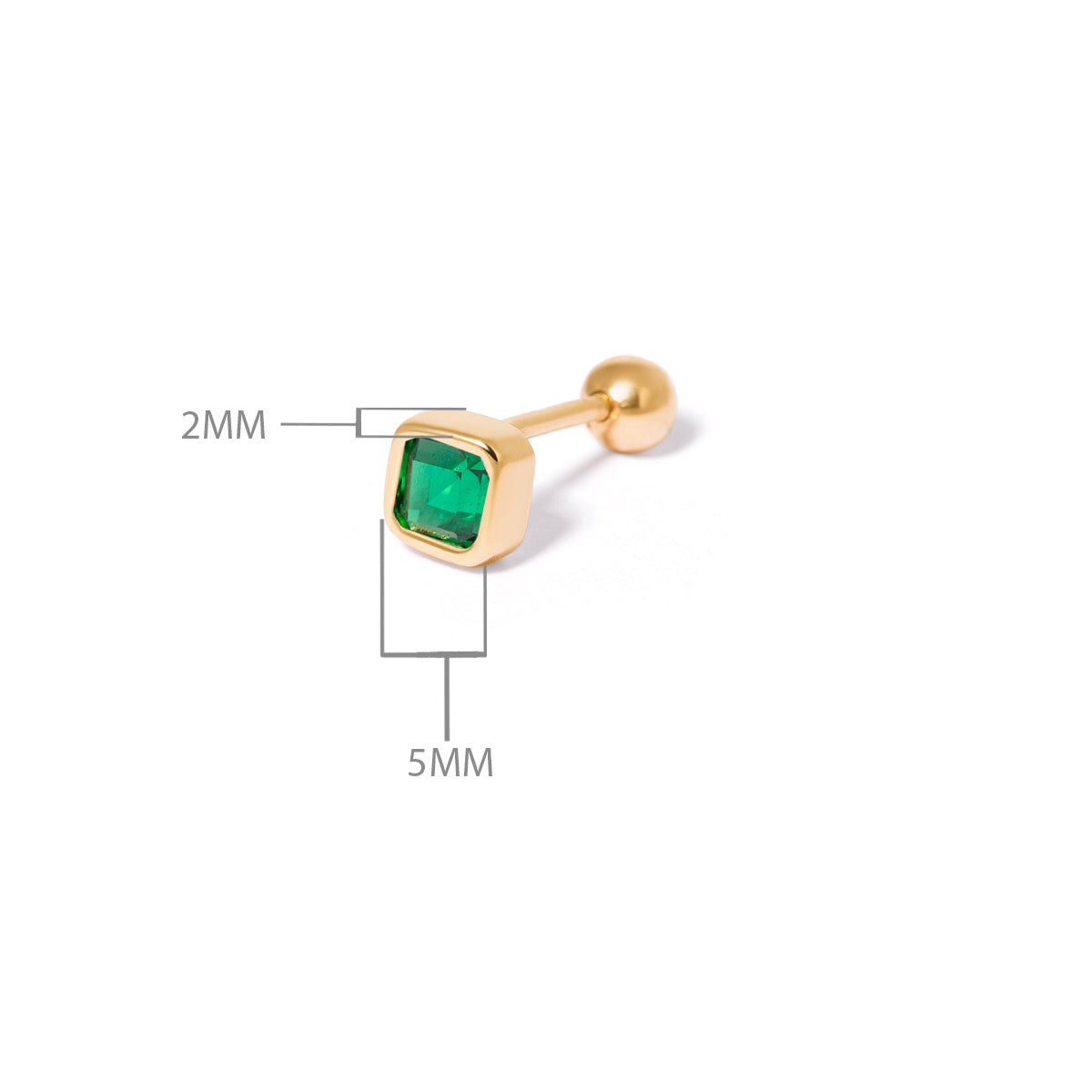 Enhance your luxury style with our Green Narmela Square Piercing. Made of 18k solid gold, adorned with a stunning green gemstone, and crafted in a square shape, this piercing exudes sophistication and exclusivity. Elevate your look and make a statement with this elegant piece of jewelry.